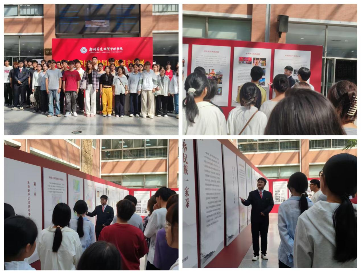 在主题展现场,2024级学生高云鹏担任讲解员,向到场师生详细阐述了“铸牢中华民族共同体意识”的核心内涵、历史脉络及实践意义。他结合展陈中的图文资料和案例故事,以清晰流畅的语言进行了系统讲解,有效帮助师生深化了对“中华民族一家亲,同心共筑中国梦”理念的理解。