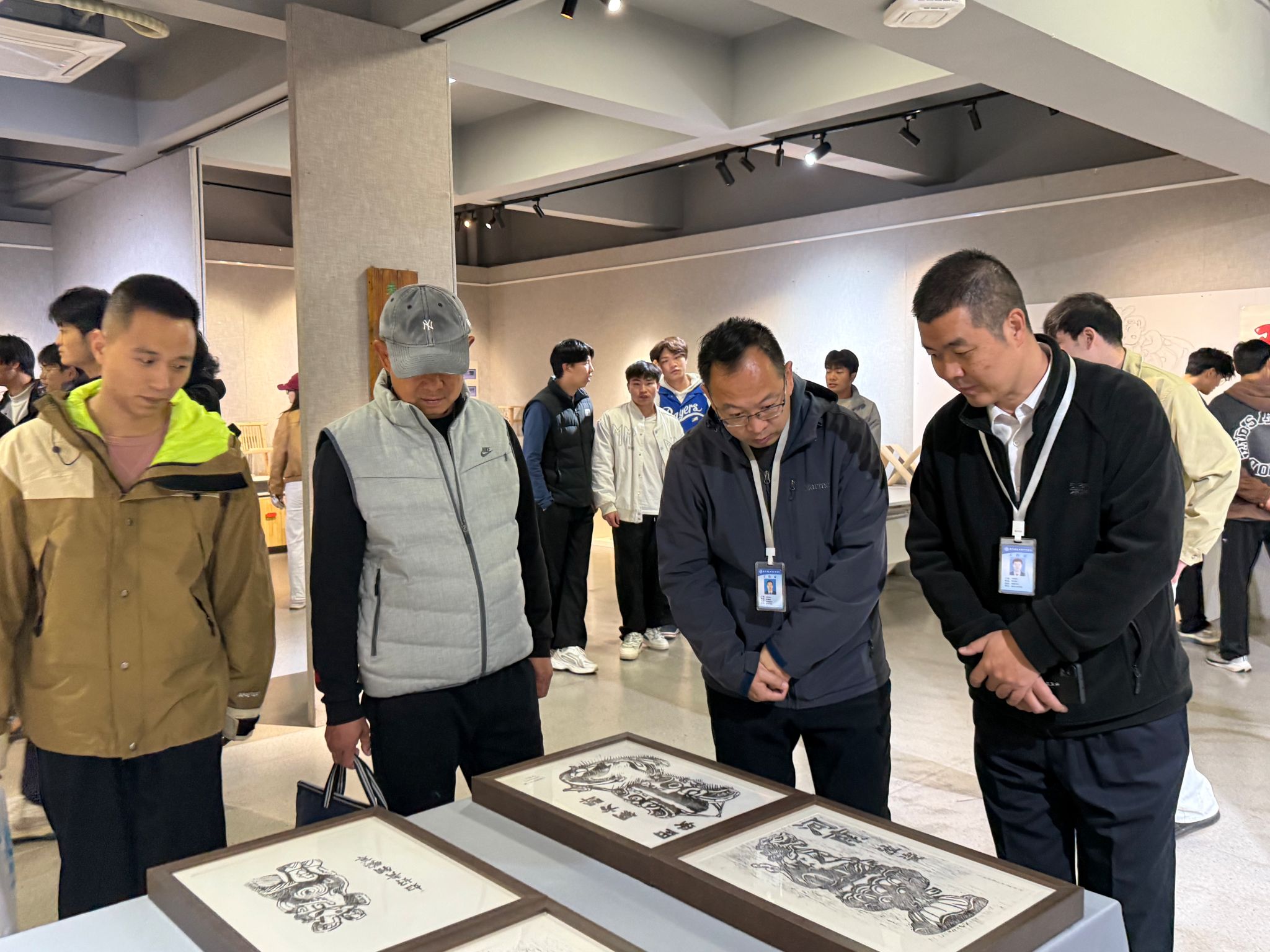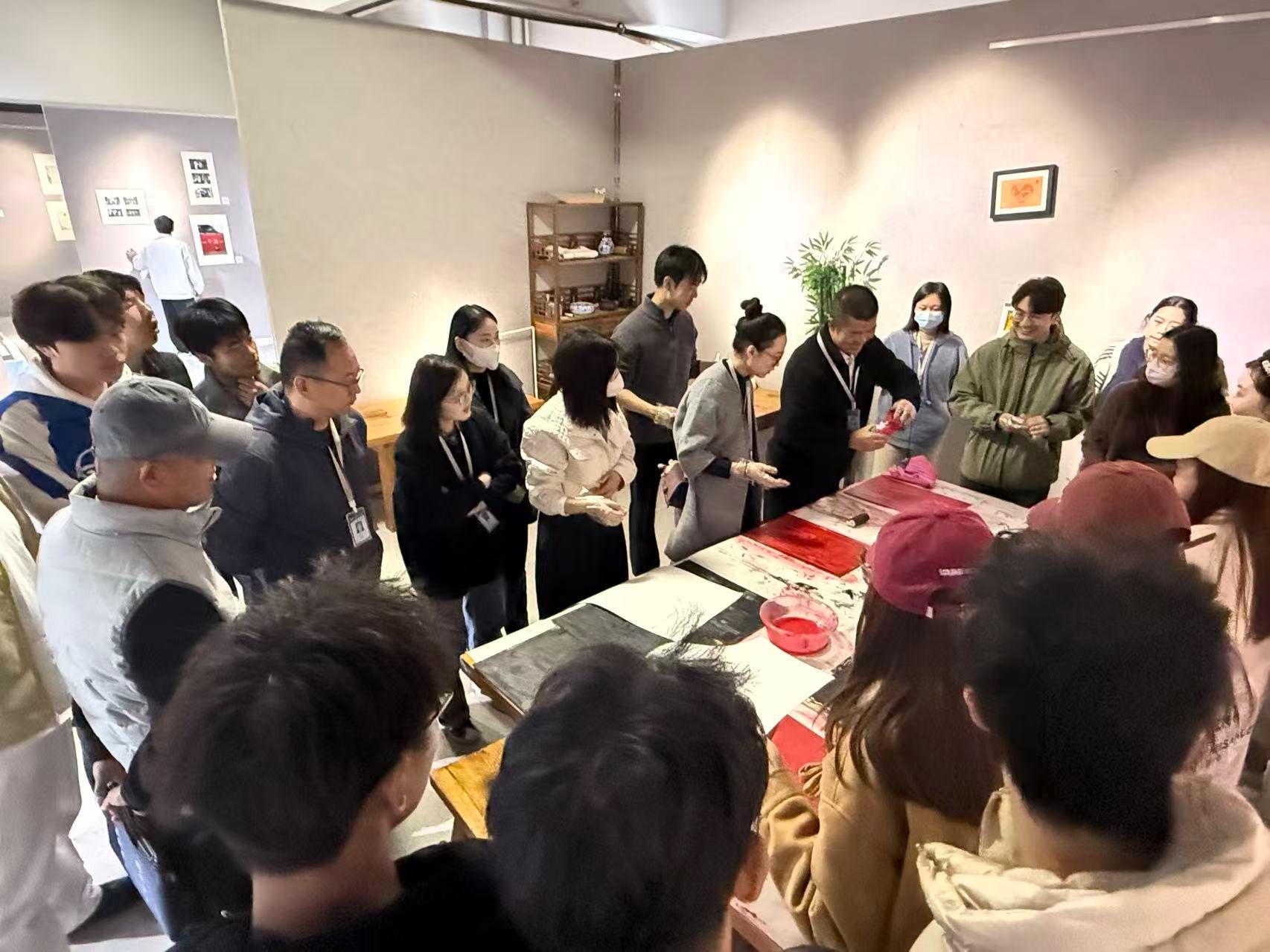 参展过程中,讲解员为全体成员介绍了一系列展品,包括书法、绘画、摄影、剪纸、拓印等艺术作品。现场书画作品主题鲜明、意境深远;摄影照片饱含爱国情怀、民族情谊;拓印作品创作独特,富有趣味,吸引师生踊跃体验。通过聆听讲解和观赏作品,师生们直观感受到中华民族多元一体的独特魅力,见证了新时代各民族共同团结奋斗、共同繁荣发展的丰硕成果。