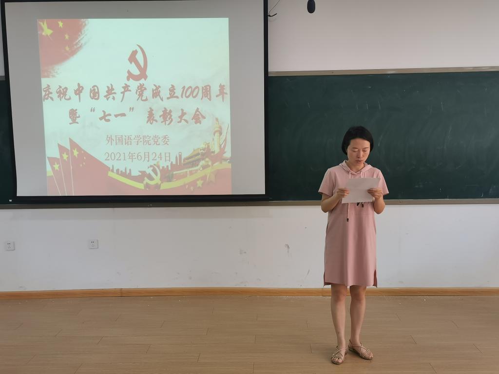 外国语学院党委举行党员重温入党誓词暨庆祝中国共产党成立100周年“七一”表彰大会
