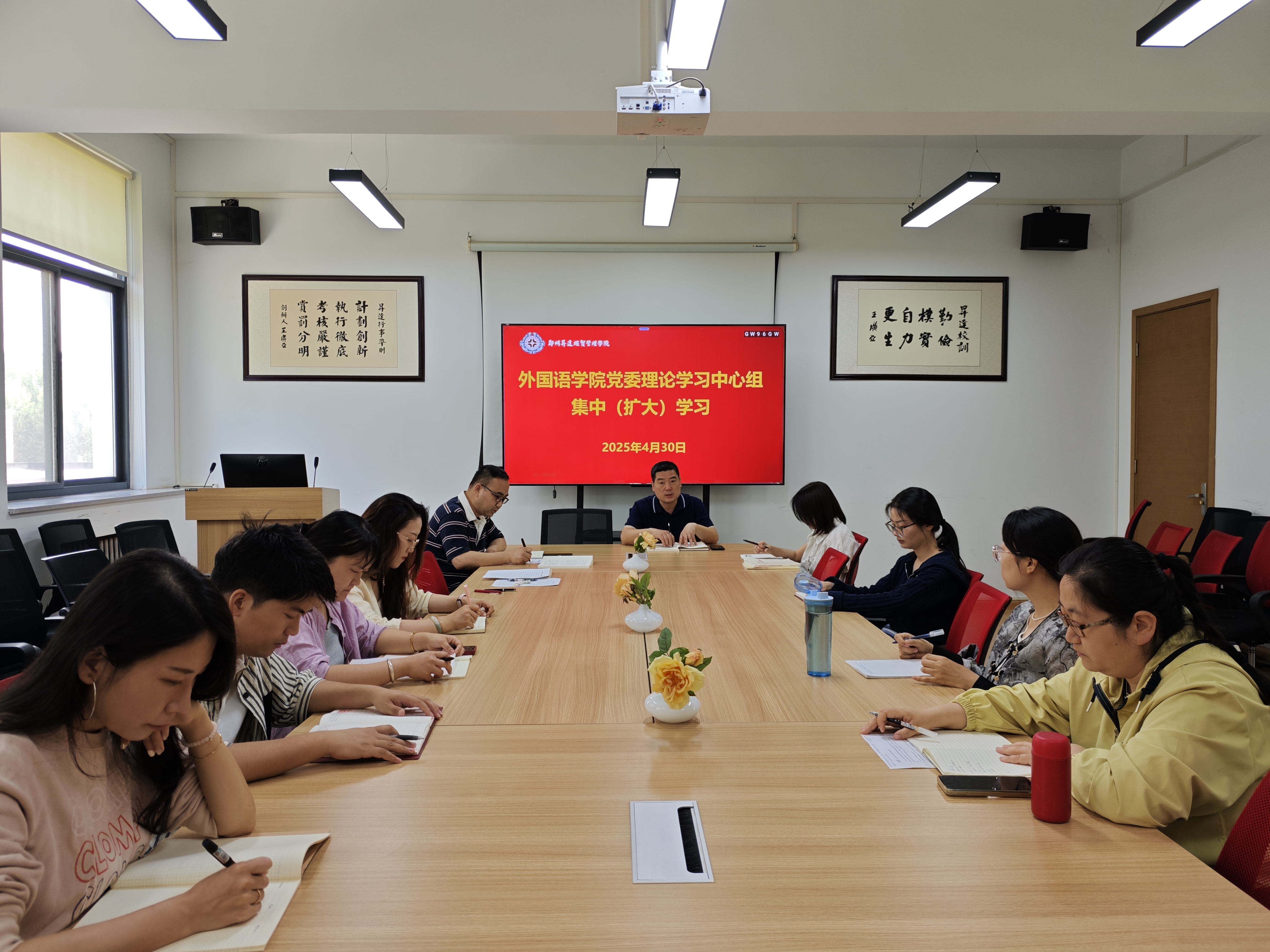按照学院党委关于开展深入贯彻中央八项规定精神学习教育工作安排,2025年4月30日,外国语学院在206会议室举行了党委理论学习中心组集中(扩大)学习会。会议由院党委书记石皓召同志主持,院党委全体委员和各党支部书记参加,学习围绕《习近平关于加强党的作风建设论述摘编》展开。