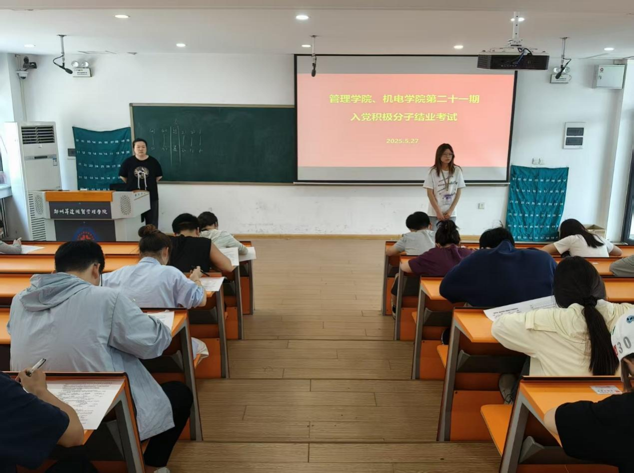为检验入党积极分子与拟发展对象对党课内容的掌握程度,管理学院、机电学院于5月26日和27日中午在教学二号楼107和208开展了第二十一期入党积极分子和拟发展对象党课结业考试,管理学院、机电学院第二十一期入党积极分子与拟发展对象全员参加。