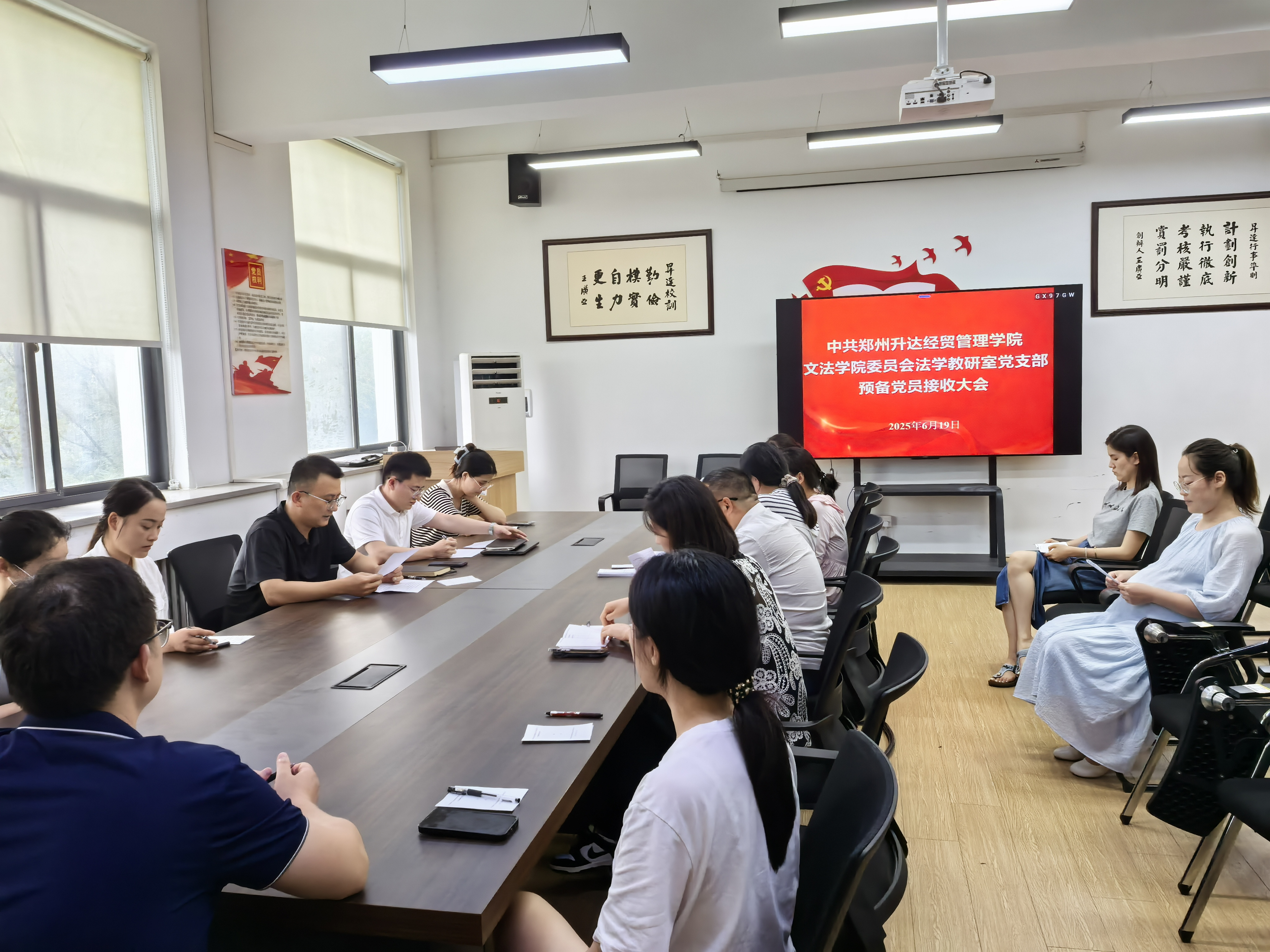 6月19日下午,法学教研室党支部召开预备党员接收大会,会议由党支部书记史辉主持,全体党员参加。