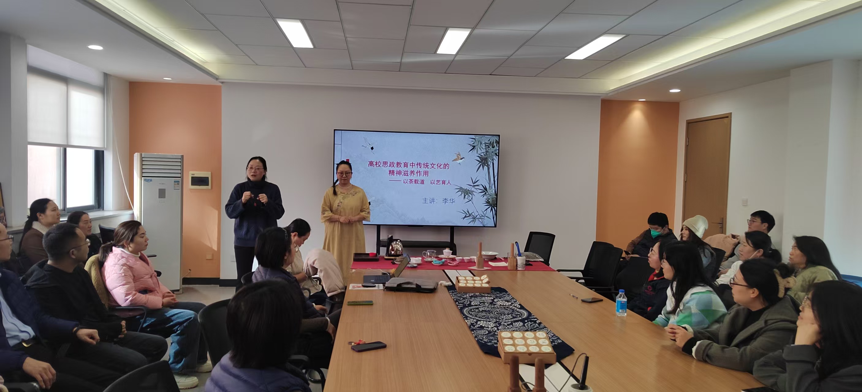 11月26日,金融贸易学院党委在2-212开展特色主题党日活动。40余名教工党员齐聚一堂,在茶香氤氲与传统艺韵中感悟中华文脉,让中华优秀传统文化成为思政教育的鲜活养分,让红色信仰在文化浸润中落地生根。
