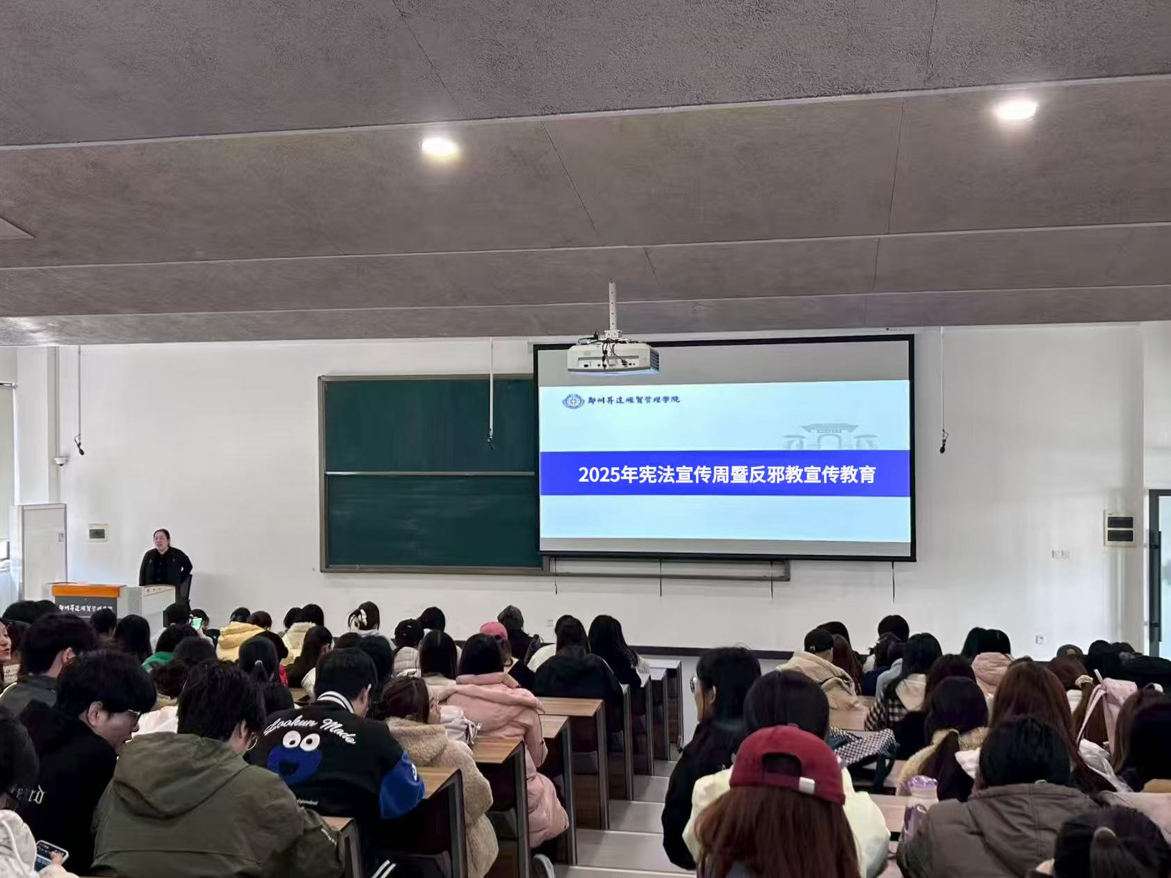 作为系列活动的核心环节,各班级以 “学宪法・反邪教・守平安” 为主题同步开展班会,实现全院年级、班级全覆盖。反邪教协会骨干成员化身 “青年宣讲员”,走进课堂通过 PPT 演示、案例拆解、互动问答等形式,结合邪教组织 “精神控制”“编造歪理”“敛财害命” 的典型特征,用真实案例揭露邪教对个人、家庭及社会的严重危害。为提升参与感与实效性,同学们在宪法条文、反邪教法规抢答中深化记忆,将法治信仰与反邪决心转化为自觉行动。
