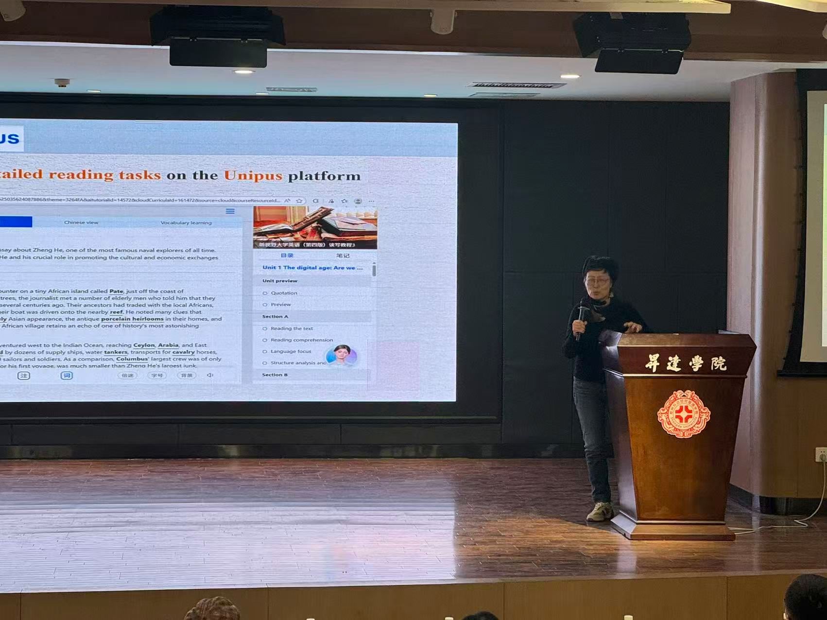 最后,外国语学院院长王莉莉作总结讲话。王院长指出,本次比赛不仅是一场教学技能的比拼,更是一次党的二十届四中全会精神学习成果的集中展示,教师们要不断创新教学模式,提升教学质量,培养更多坚定理想信念和深厚家国情怀的复合型人才,为服务国家战略和地方发展作出更大贡献。