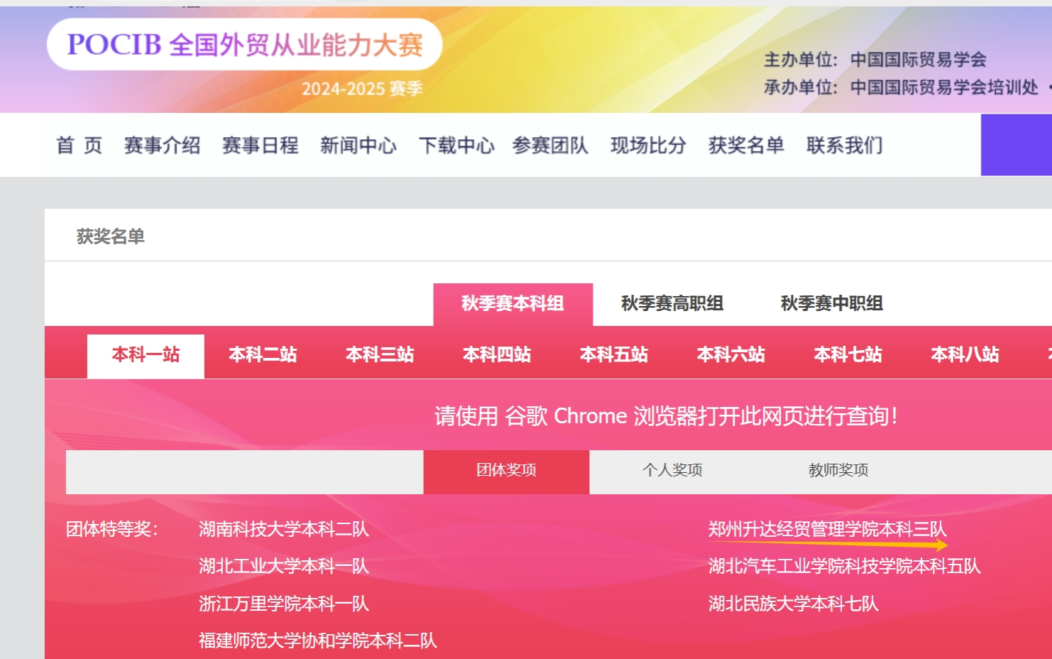 根据赛制,每一个赛站有73支队伍,前10%为团队特等奖,前5%为个人一等奖。我校参赛学生能够在强手如林的竞赛中冲出重围,创造历史,充分证明了金融贸易学院国际贸易专业教师们的扎实教学功底和学生的过硬专业素养。与兄弟高校同台竞技,是对国贸专业人才培养质量的一次检验,而国贸师生交出了完美答卷。