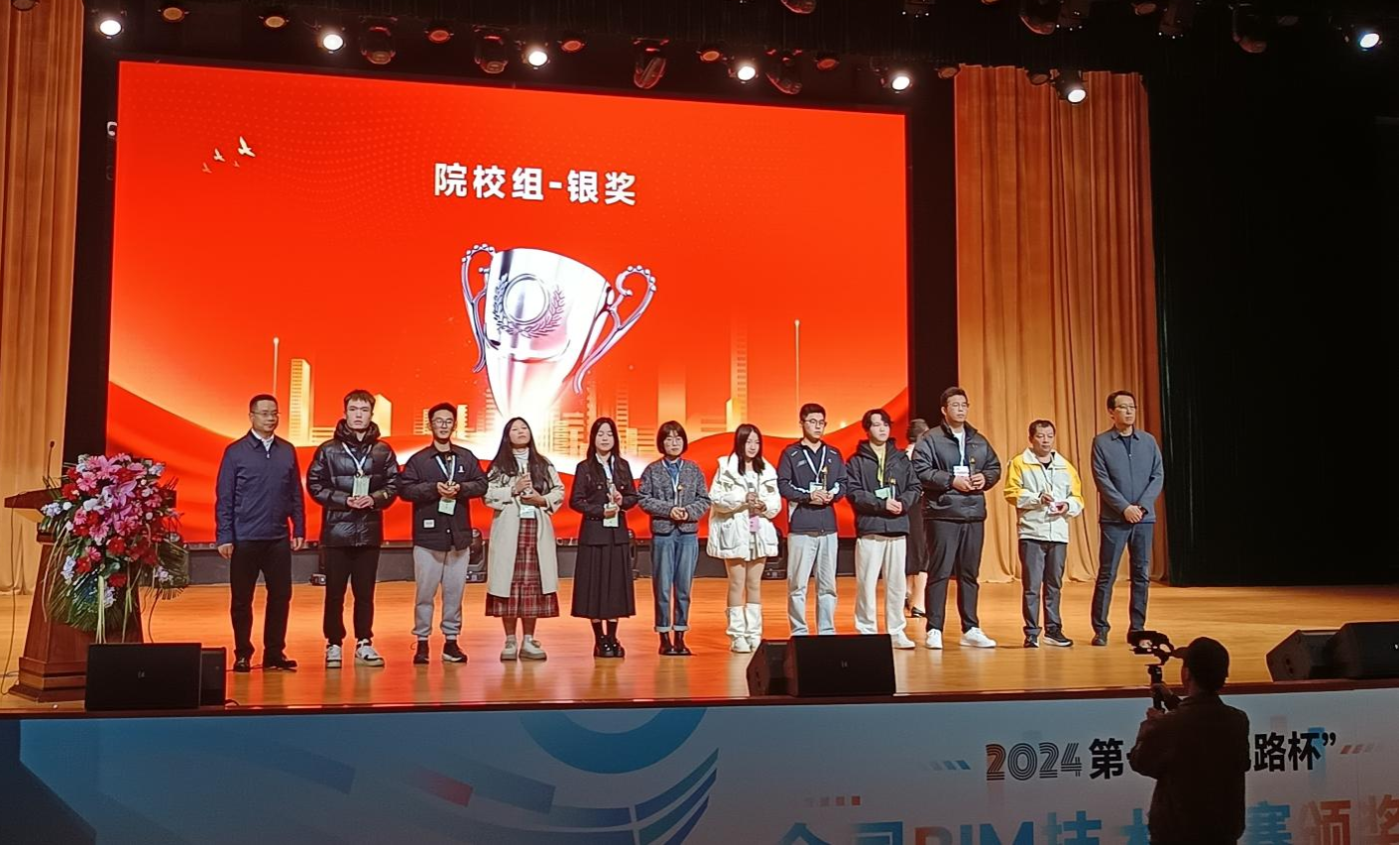 这次参赛的3支队伍由建筑工程学院4个教研室的9位老师带队,涵盖了建筑学、土木工程、工程造价、工程管理4个专业共计30名学生组成,学院的3支队伍在大赛中展现了出色的团队协作和专业技能。他们的作品在设计、施工、综合等多个方向上均得到了专家评委的高度评价。由杜云静、李明、张群老师指导的队伍获得了银奖,他们的作品以其创新的设计理念和精细的模型构建赢得了评委的青睐;由魏春龙、龚潇、张春阳指导老师指导的队伍获得了铜奖,他们的作品在施工方案模拟方面展现了卓越的实践能力;由房硕、任小营、刘华普老师指导的队伍获得了优秀奖,他们的作品则在装饰专项中展现了对细节的精准把握和创新思维。