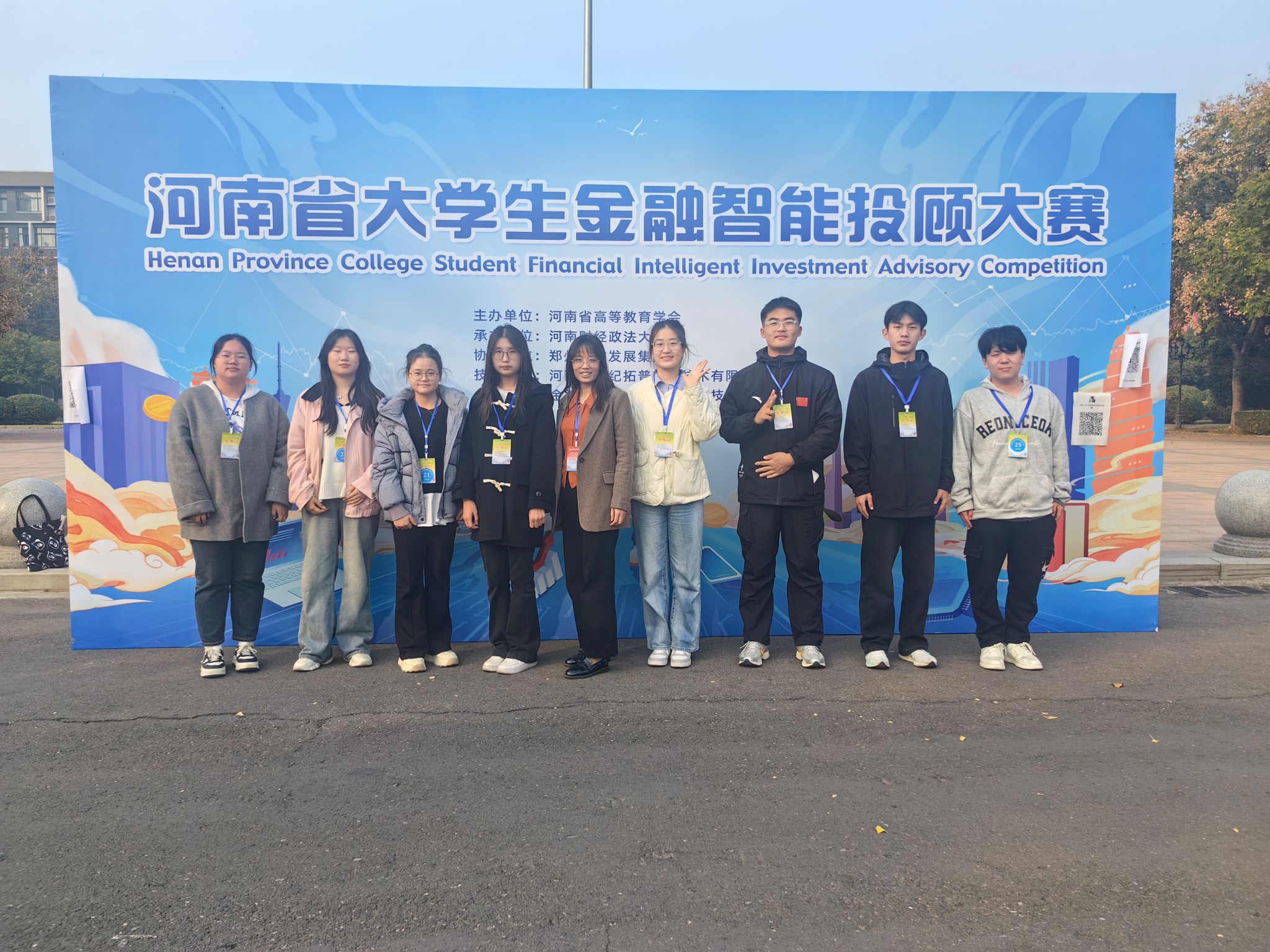 2024年11月9-10日,由河南高等教育协会主办的河南省大学生金融智能投顾大赛决赛在河南财经政法大学举行。我校金融贸易学院金融学教研室苏益莉、牛敏、温子奕等老师组织和指导的两支本科队参加了此次比赛。经过为期两天的激烈角逐,两支队伍均获得三等奖。