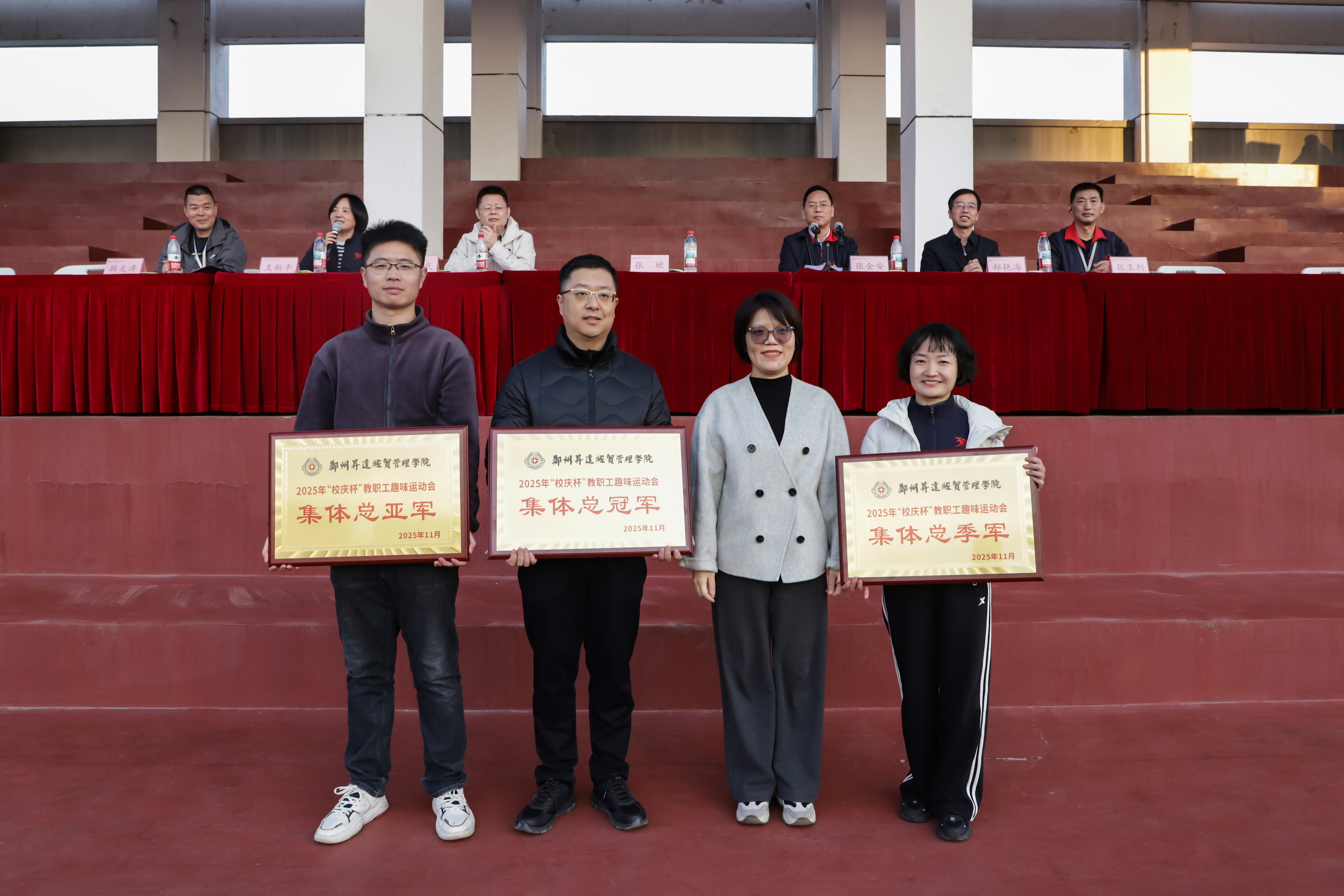 为丰富教职工文化生活、增进身心健康、凝聚团队奋进力量,11月20日,我校2025年“校庆杯”教职工趣味运动会决赛在学校田径场、篮球场、排球场等场地圆满收官。本次赛事由校工会主办、体育学院承办,总务处和健康中心协办,以“强身健体营造温馨团队心手相牵构建和谐校园”为主题,自11月10日启动预赛,经一周角逐后于20.........[详细]