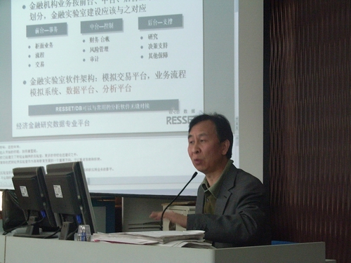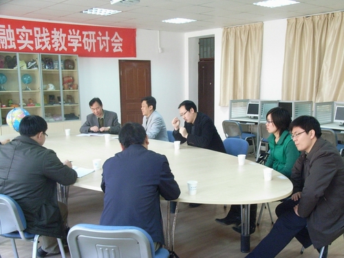 朱世武教授首先在金控中心证券投资实验室结合他自己开发设计的Resset数据库为国贸系教师展示了金融教学辅助软件的强大功能与突出效果;接着又来到财经研讨室和大家进行研讨。朱教授结合自己十多年的潜心研究,用国际最新经济理论对金融学领域概况、金融数据库与金融应用技术学科建设、当今社会对金融数据应用人才的需求、金融教学软件在培养应用型人才中发挥的积极作用等一系列问题进行了阐述和解答。
