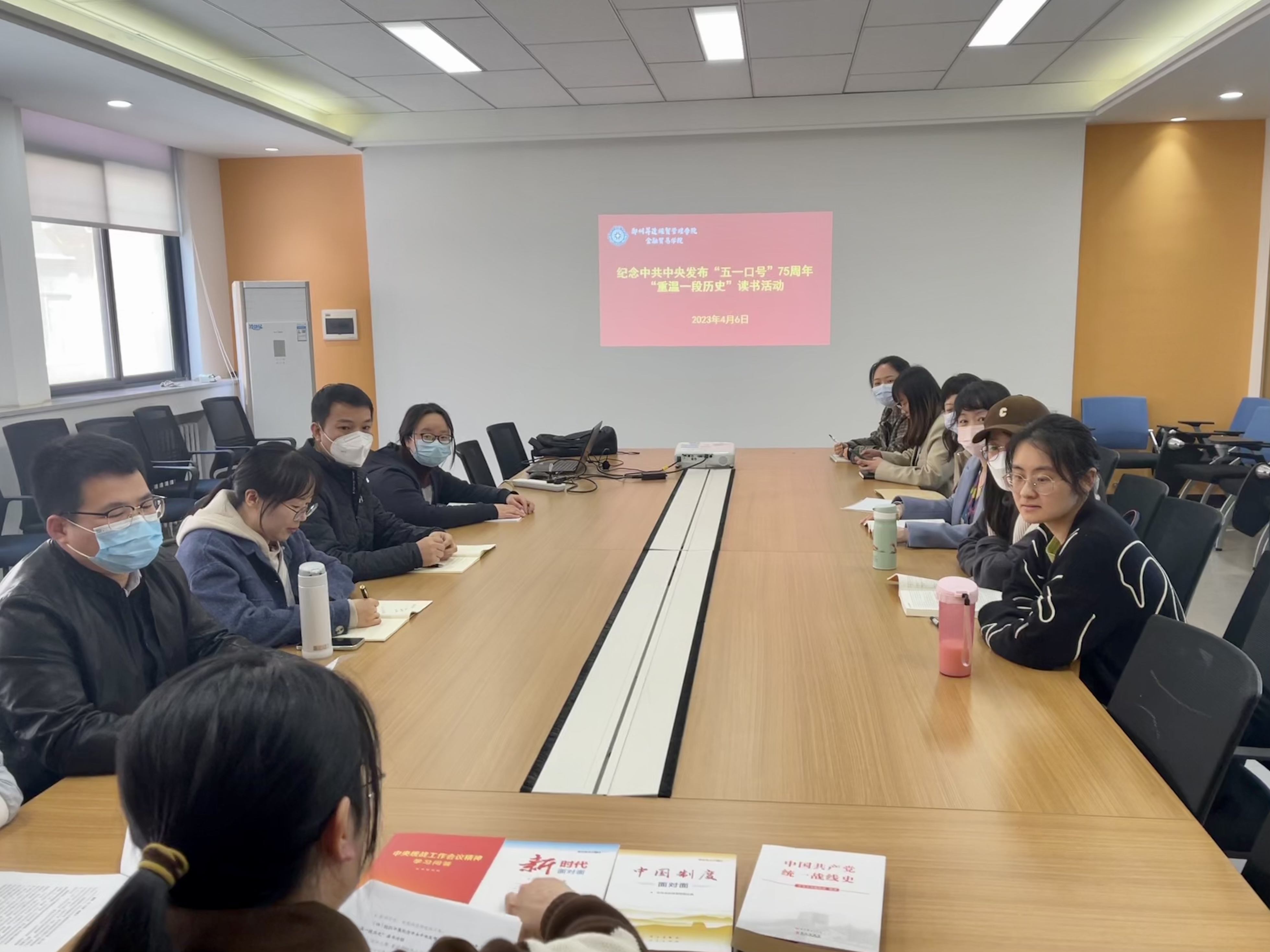 金融贸易学院于4月6日下午在3号楼212会议室举行了纪念中共中央发布“五一口号”75周年“重温一段历史”读书活动。本次活动旨在通过读书的方式,缅怀历史,传承红色基因,激发爱国热情,增强国家意识和民族自豪感。