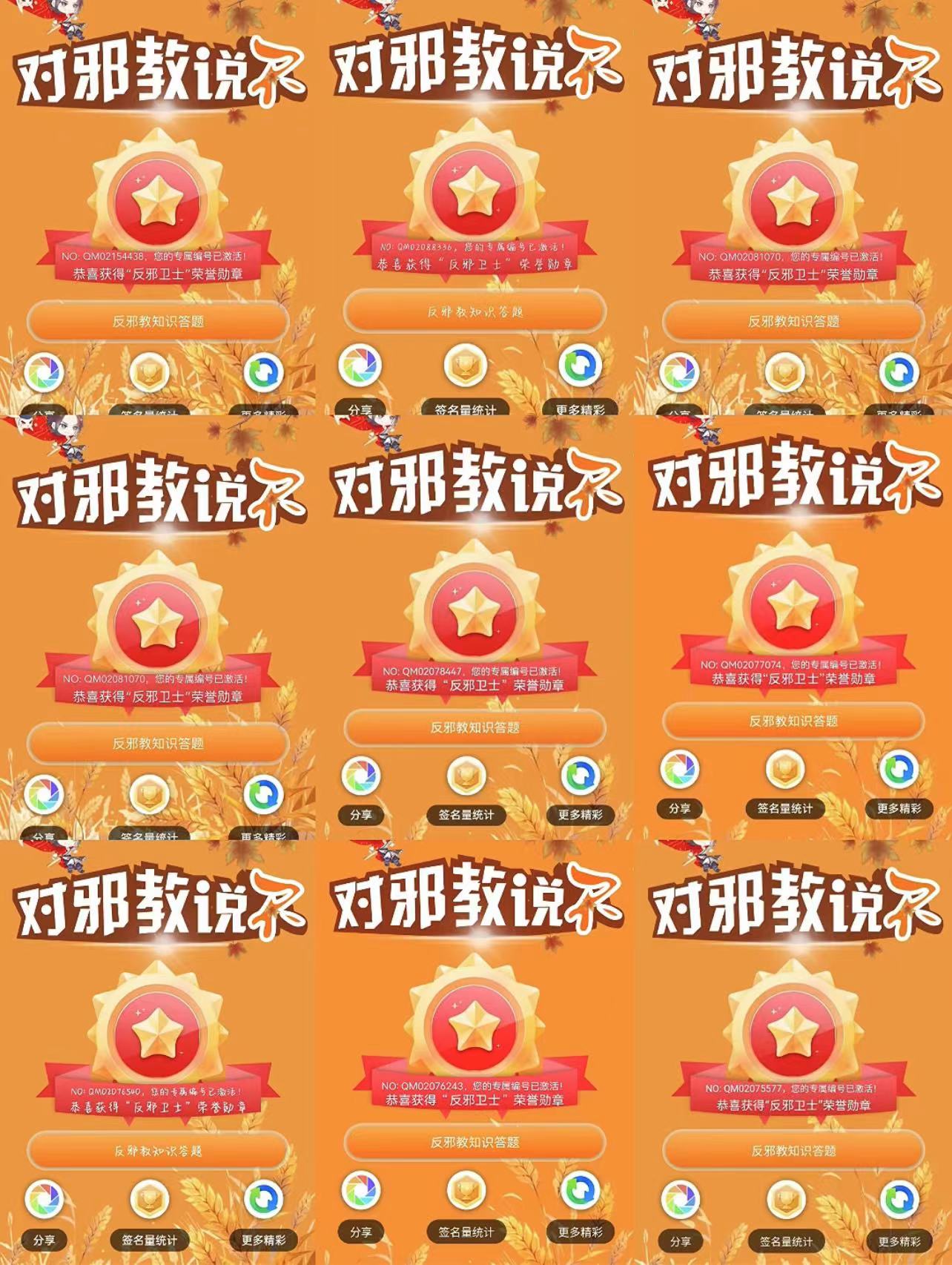 本次活动通过网络平台“中国反邪教”开展,学生们在平台内按流程填写相关信息后参与“对邪教说不”网上签名活动,并获得“反邪卫士”荣誉勋章称号。