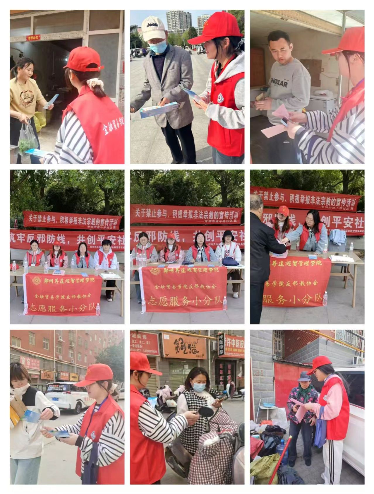 清明将至,为筑牢反邪防线、守护社会安宁,为进一步提高社区居民群众对邪教的认识,加强反邪教宣传教育,4月2日,金融贸易学院反邪教协会携手新郑市小乔社区开展 反邪教宣传活动,切实维护社区生活的和谐稳定。