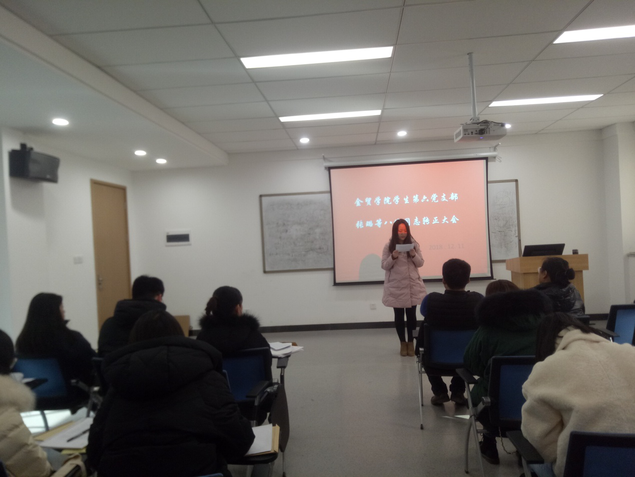 2018年12月11日,金贸学院学生第六党支部在3-112教室如期召开关于张璐等八位同志的转正大会。