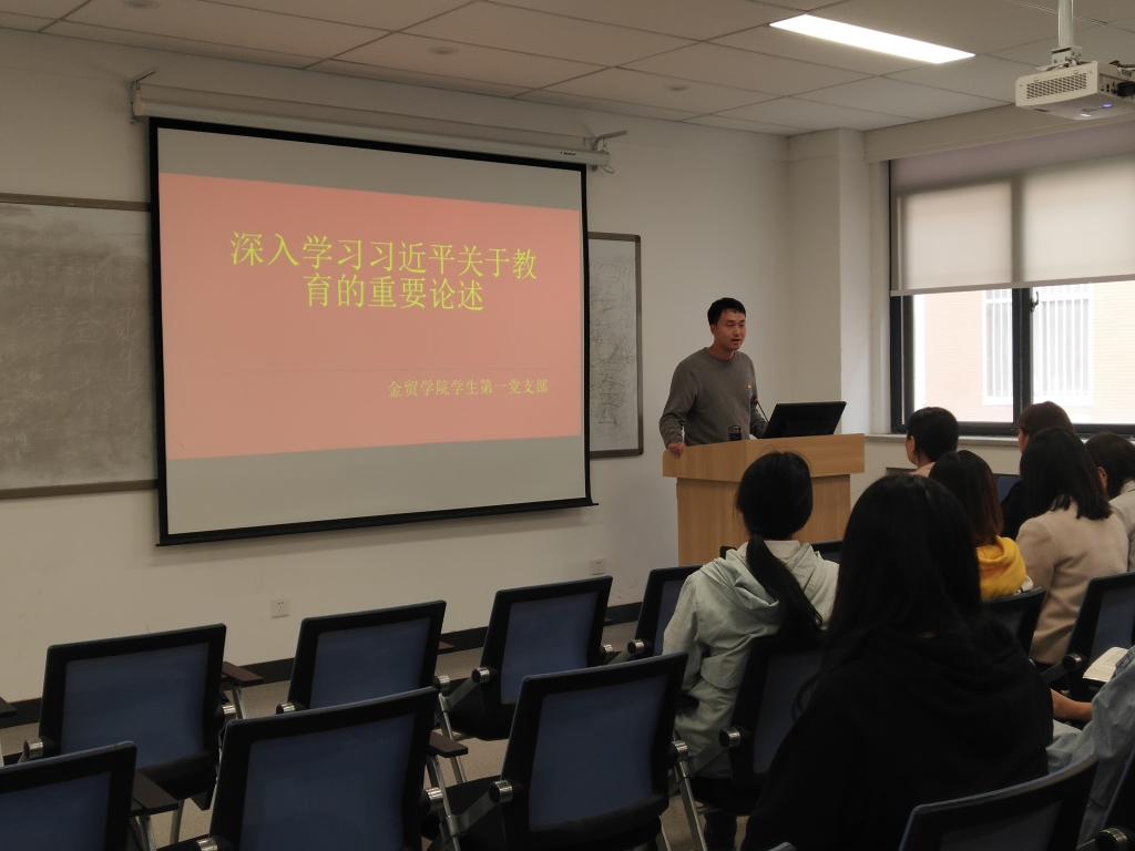 10月10日星期四下午2:30,金贸学院学生第一党支部在三号楼112室进行了“不忘初心、牢记使命”的主题教育,本次教育由金贸学院学生第一党支部支部书记秦童老师组织,参会人员有组织委员王一柳老师,常海龙老师和所有支部党员。
