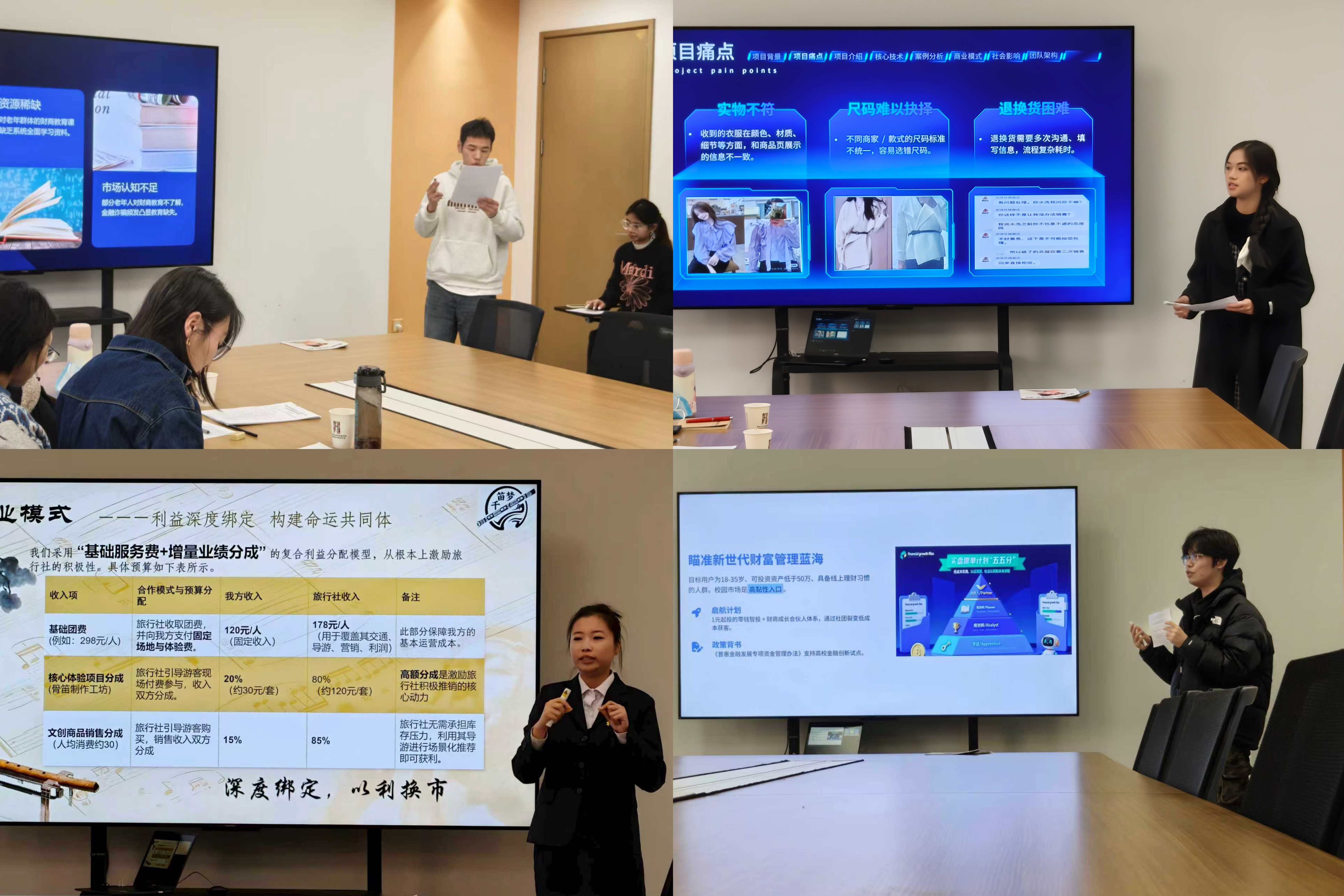 各团队按照顺序依次汇报,通过PPT汇报清晰阐述项目核心思路、运营规划与核心优势,充分展现出扎实的专业基础、良好的应变能力与团队协作精神,现场氛围热烈,创意与思维的碰撞不断涌现。