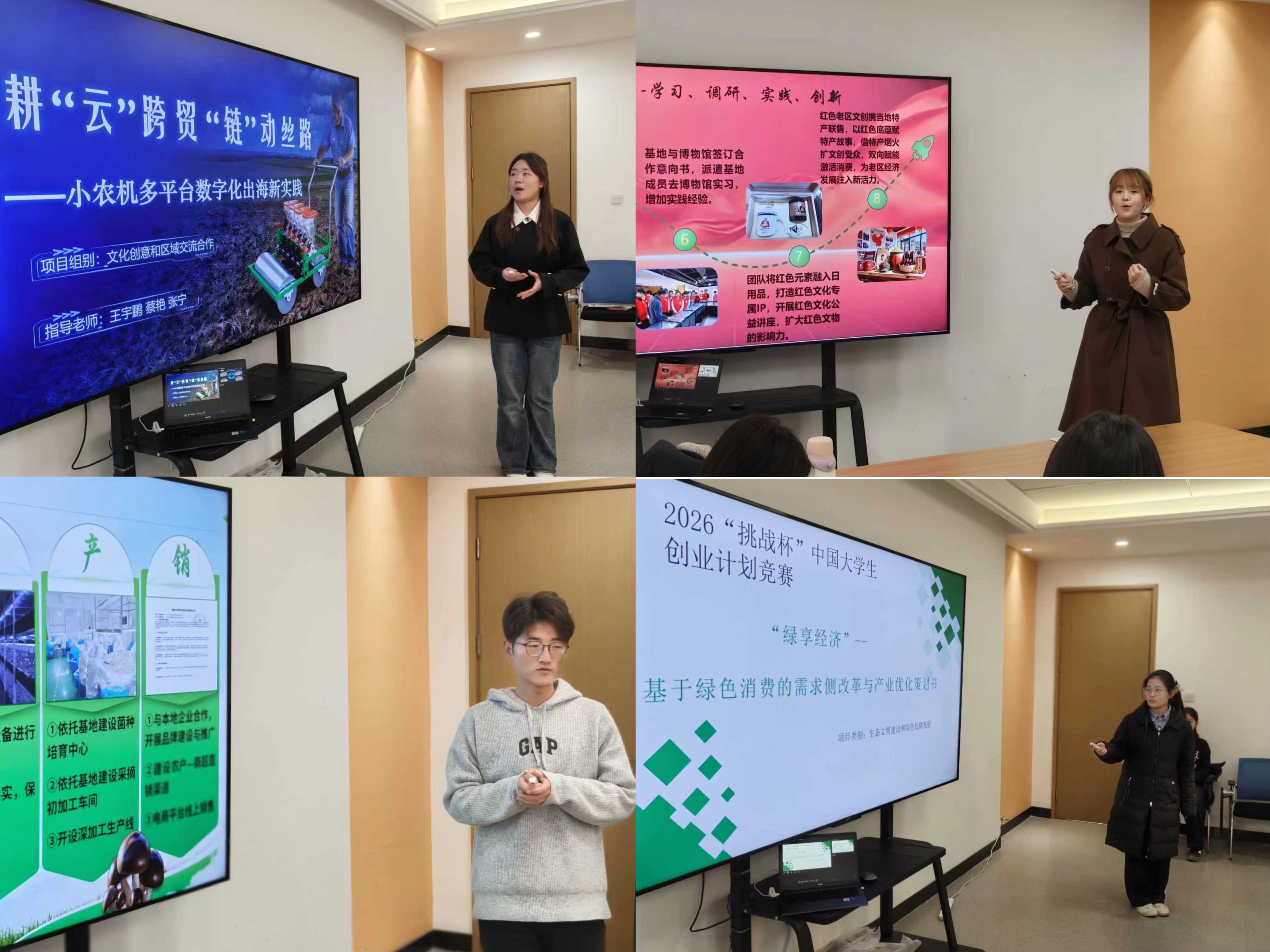 12月11日14:00,由金融贸易学院团委主办,团委学术部承办的2026年“挑战杯”大学生创业计划竞赛院赛,在教学3号楼212室举办。金融贸易学院党委副书记王娟,团委副书记曾婧婧,专任教师蔡艳、马晶晶、张聚伟五位老师担任评委。