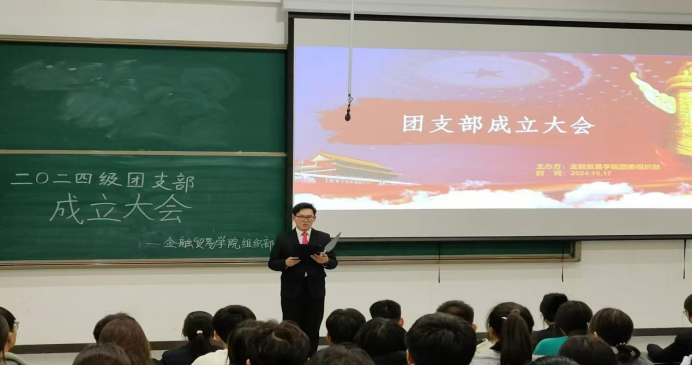 为进一步加强基层团组织建设,提升青年学生的思想政治素质,增强共青团工作的凝聚力和战斗力,金融贸易学院团委组织部于2024年10月17日在教学楼3号楼107教室成功举办了2024级团支部成立大会,为学院发展注入新的活力。