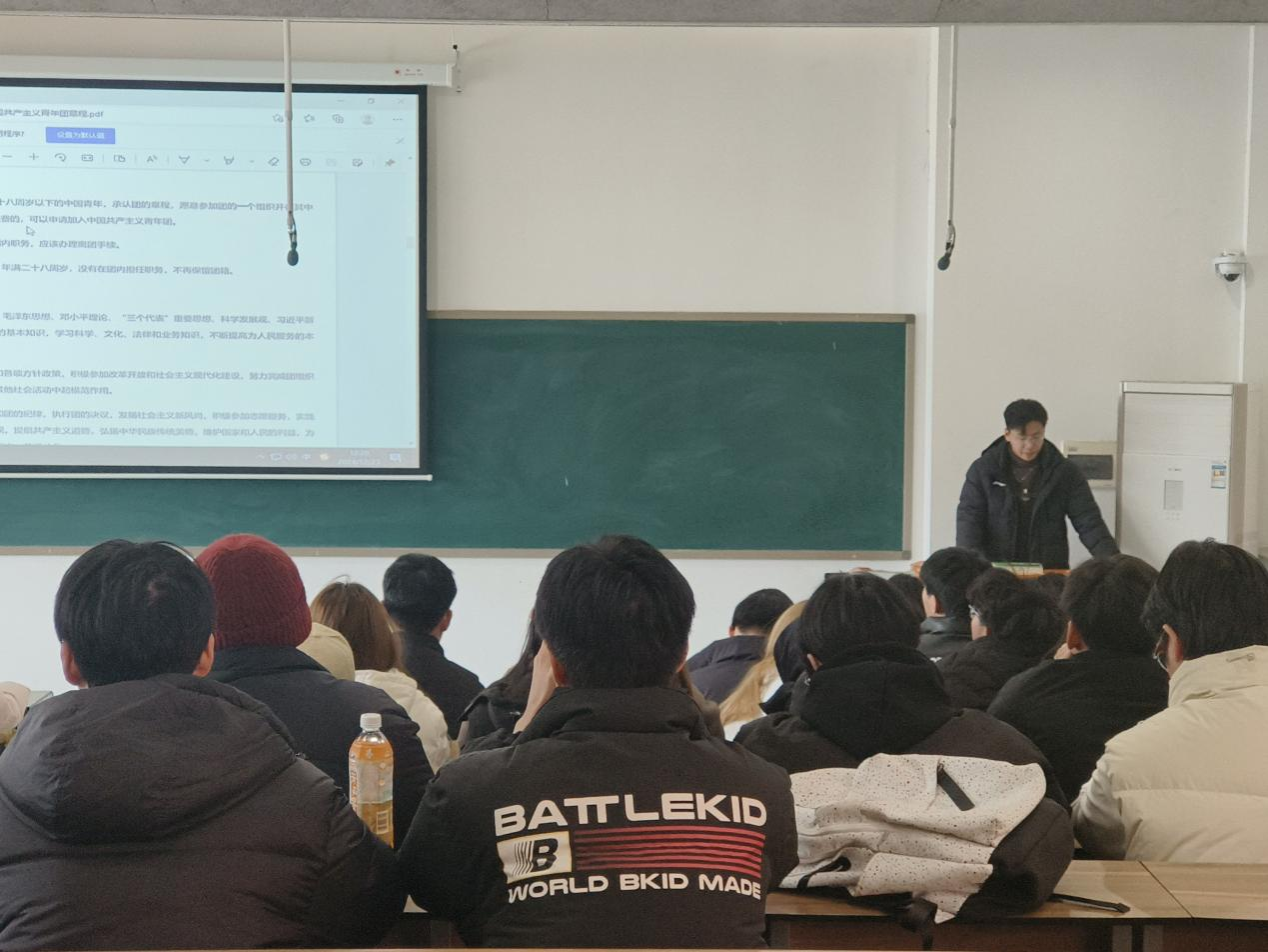 此次课程由魏庆飞学长作为主讲人。他首先介绍了《中国共产主义青年团章程》的基本概况和重要地位,强调了团章作为团组织的基本法规,对指导团组织工作、规范团员行为具有重要意义。随后,又详细解读了团章中关于团的性质、宗旨、任务以及团员的权利与义务等关键内容,通过生动的案例和深入浅出的讲解,使青年团员对团章有了更加全面和深刻的理解。