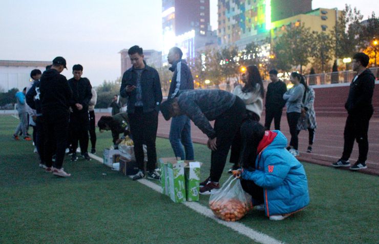 2017年11月29日下午五时许整,金融贸易学院“田径队福利发放”活动在操场正式开始。本次活动主要是为了给不辞辛劳训练的田径队员送去寒风中的一丝温暖。本次活动我院行政秘书兼团委书记闫帅老师、金贸学院常务副书记兼16级铺导员李雷老师、17级新生铺导员朱帅老师、朱风帅老师、常单单老师、苏浩老师提前到现场慰问,并询问队员们训练情况。金贸学院团委副书记李征宇、学生会主席李浩天、社团联合会理事长白嘉伟、副主席李宏润、郭晓阳、李丽娜等陪同。