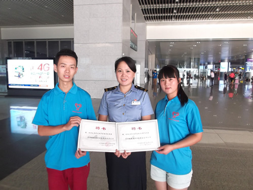 为圆中国梦,树立典型,提高学生参与社会服务的热情,国贸系团委、青年志愿团队多次到郑州铁路局东站进行“传承服务使命,践行雷锋精神”志愿者服务系列活动。近日,郑州铁路局郑州东车站团委为我系团委颁发了聘书,与国贸系团委正式成为合作伙伴。