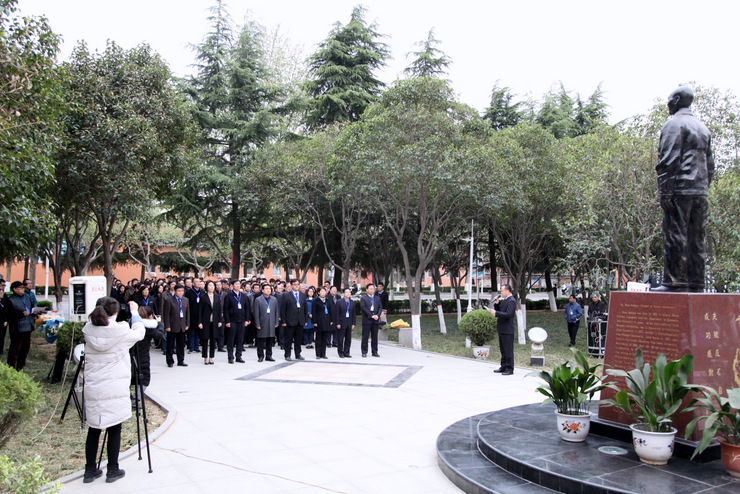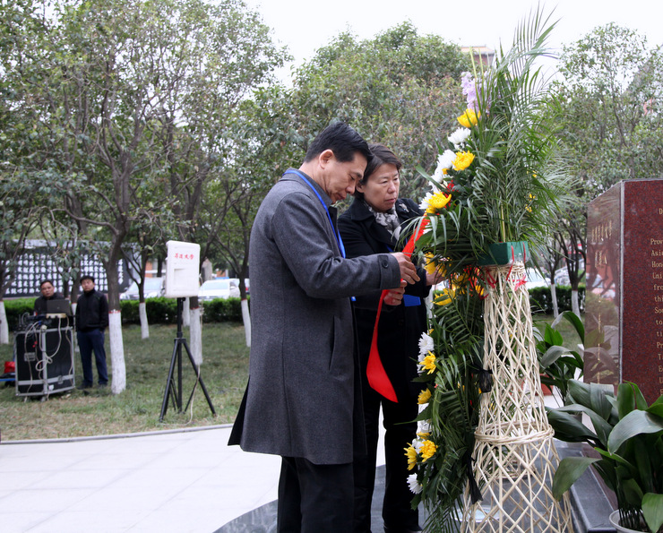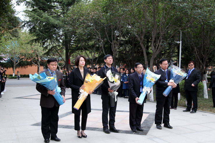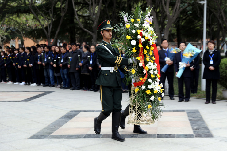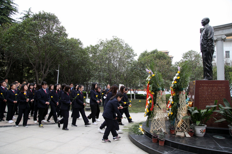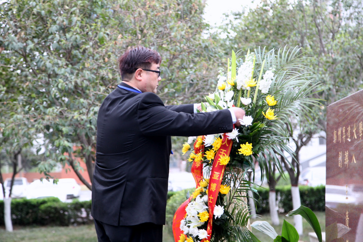 清明时节悼英魂,深切怀念创办人。4月4日上午,在清明节到来前夕,我校在建校纪念碑广场、创办人王广亚博士塑像前,举行“纪念创办人王广亚博士献花仪式”。出席仪式的校领导有:执行董事王新奇、校长郭爱先、校党委书记张德伟、常务副校长崔慕岳、校党委副书记戎庭银,副校长张洁、副校长张金安、副校长吴益民。各处室主管、教学院部院长、主任、党总支书记、副院长、副主任,教师代表及学生代表参加了敬献鲜花仪式。敬献鲜花仪式由校办主任朱永恒主持。