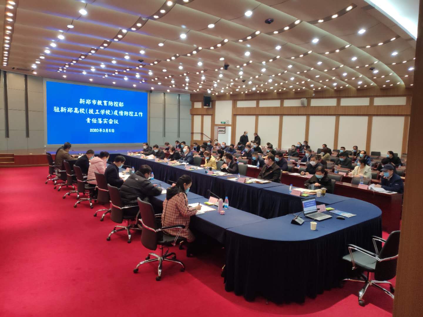 3月5日,新郑市教育防控部驻新郑高校疫情防控工作责任落实部署会在我校召开。新郑市委常委、宣传部部长张慧娴,新郑市人大常委会副主任王金灿,新郑市副市长周建超,新郑教育园区管委会副主任张顺安,新郑市教育局党组书记兼局长刘学敏、副局长张宏亮、副局长王俊丽,我校执行董事王新奇及驻新郑各高校、新郑市各乡镇、街道、管委会疫情防控责任领导,各督导组组长等参加了会议。会议由新郑市教育局党组书记兼局长刘学敏主持。