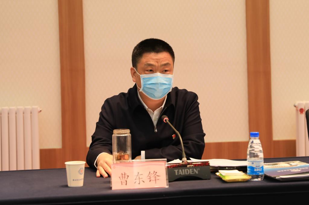 新郑市委副书记、市疫情防控工作领导小组常务副组长曹东锋讲话。他指出,经过前期工作,新郑市初步形成了校地协同、权责明确、一体推进的疫情防控管理机制,取得了阶段性成效,但同时存在着思想重视程度不够、工作措施落实不够、督导动真碰硬不够等问题。在分析了当前全国疫情防控形势后,他强调,严格防范境外疫情风险输入已成为“外防输入”的重中之重,要继续保持“外防输入、内防扩散”的防控策略,具体做到:一要在持续学习中把握新要求;二要在落实责任中提高执行力;三要在联动协作中打赢阻击战。他要求全体参会人员要学习贯彻好上级决策部署,把问题考虑得更严重一些,把措施落实得更有力一些,坚定信心,咬定目标,和衷共济,砥砺拼搏,再接再厉,把病毒阻止在校园之外,坚决打赢疫情防控阻击战。