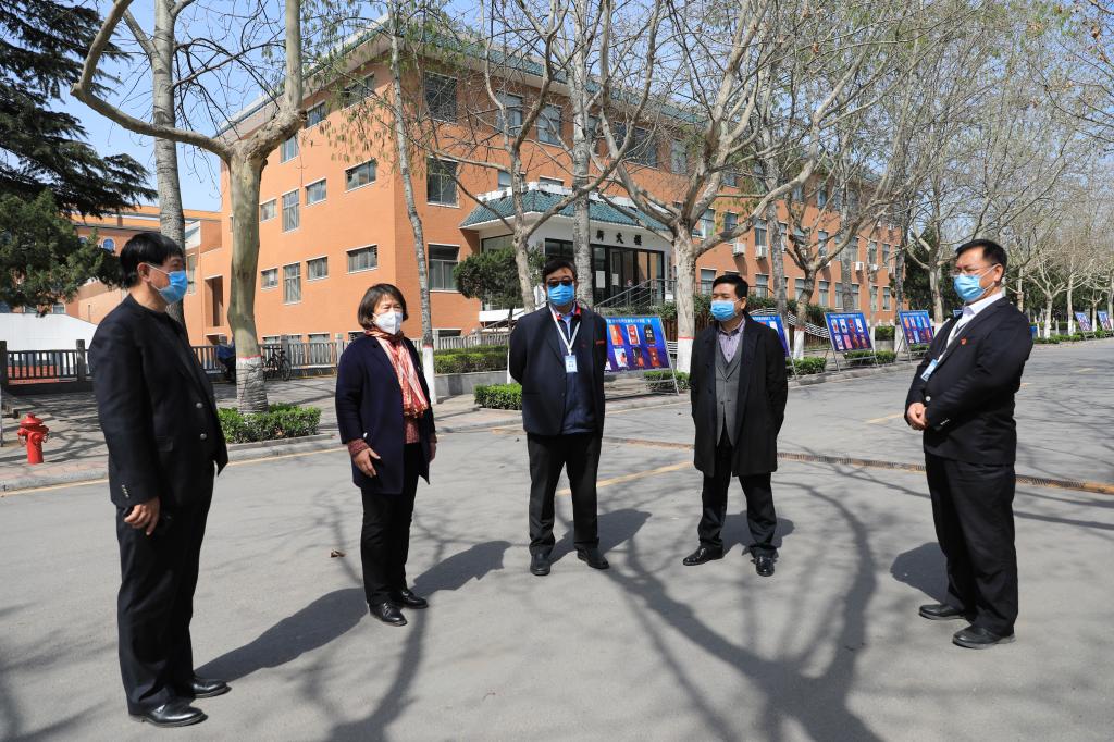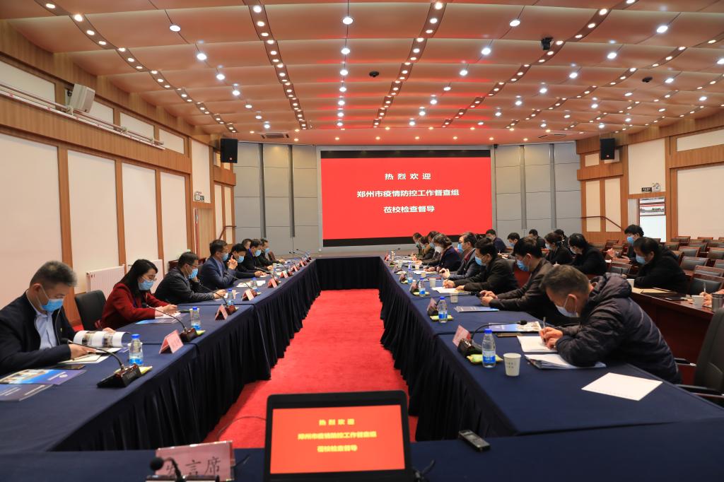 3月17日上午,郑州市教育局督查组王巨涛副局长一行在新郑市副市长周建超、新郑市辖区高校新冠肺炎疫情防控工作分管市领导杨春峰副主任、新郑市教体局局长刘学敏、新郑市辖区高校新冠肺炎疫情防控督导第二小组责任领导陶显峰局长、刘建坤组长等陪同下到我校开展疫情防控检查督导工作。我校校领导执行董事王新奇、校长郭爱先、党委书记张德伟、党委副书记兼纪委书记戎庭银、副校长兼工会主席张金安和疫情防控指挥部各工作组组长及相关部门同仁参加会议和实地检查。