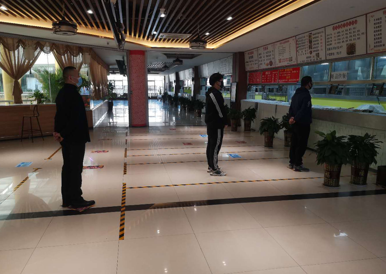 为切实做好返校后师生就餐的安全保障工作,总务处伙食科立足学校实际,着眼校情,修订完善食堂错峰就餐工作预案及有关制度措施,鼓励师生自带餐盒,结合各学院学生人数、宿舍分布、食堂接待能力等因素,采取分学院、分时段、分区域、分批就餐的方式;全局谋划、创新工作方式方法,积极与学校现教中心沟通,研发符合校情的网上订餐平台,优化取餐方式,开启送餐模式;加强统筹、科学调整,师生食堂就餐施行“高考式”单人单桌单向就餐方式,保证餐桌椅1.5米分配距离,拉大人员距离,减少人员交流,避免交叉感染。