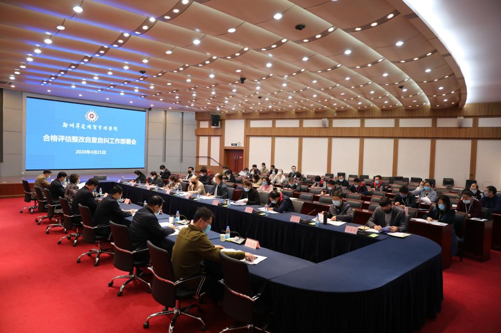 2020年4月21日下午,在我校行政楼国际会议厅召开了合格评估整改自查自纠工作部署会,校执行董事王新奇、校长郭爱先、校党委书记张德伟、校党委副书记兼纪委书记戎庭银、副校长兼工会主席张金安、副校长兼教务长吴益民、副校长兼总务长张其武、各部门主管、各教学单位院长(主任)及书记、教学质量监测与评估中心全体人员参加了会议。会议由校长郭爱先主持。