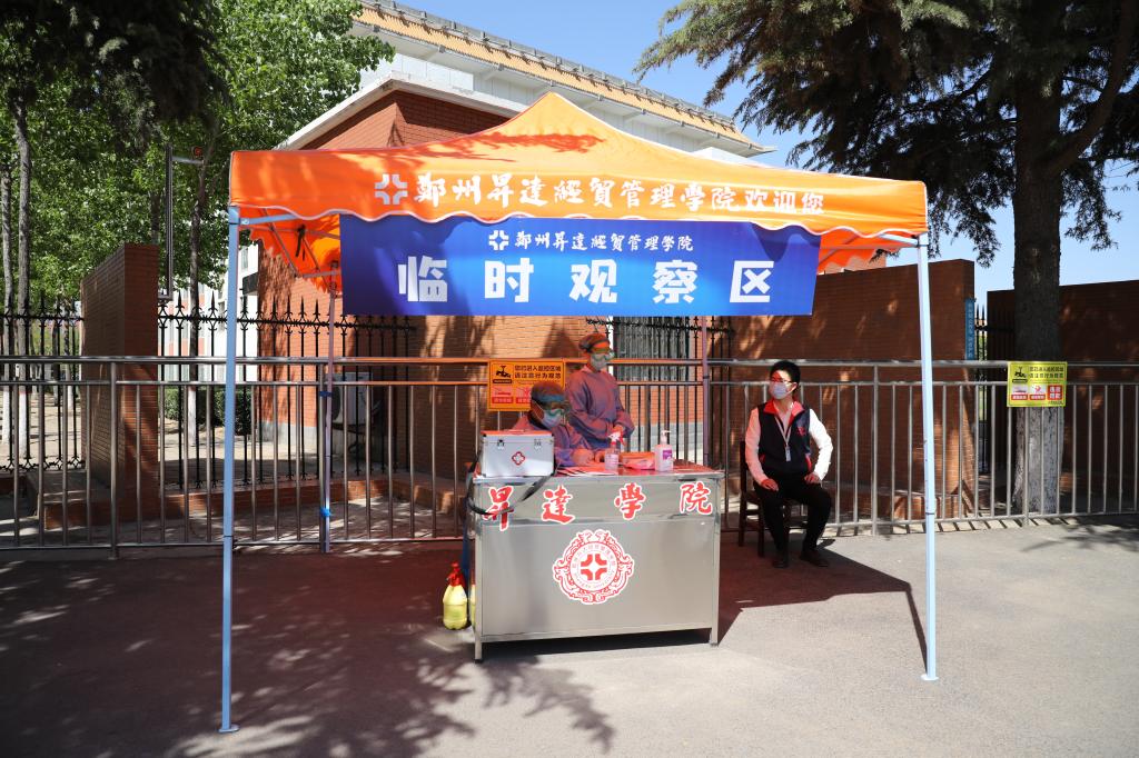 体温异常和身体不适者被带至临时观察区,并报告学校健康中心