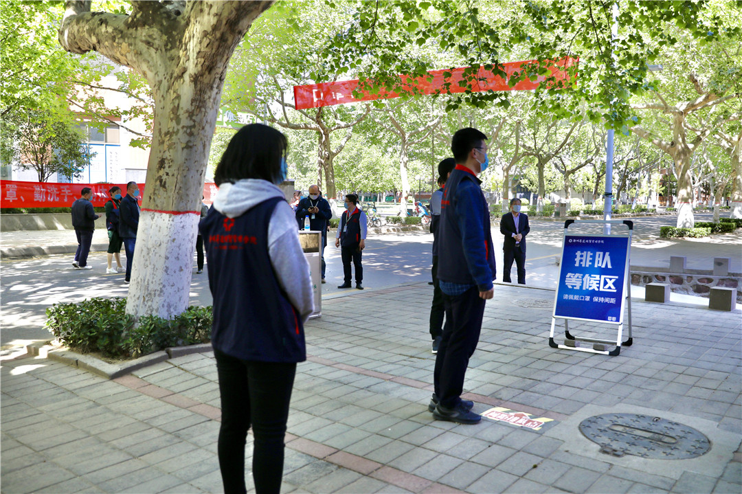 持绿码者“学生”间隔1.5米,有序排队通过等候区