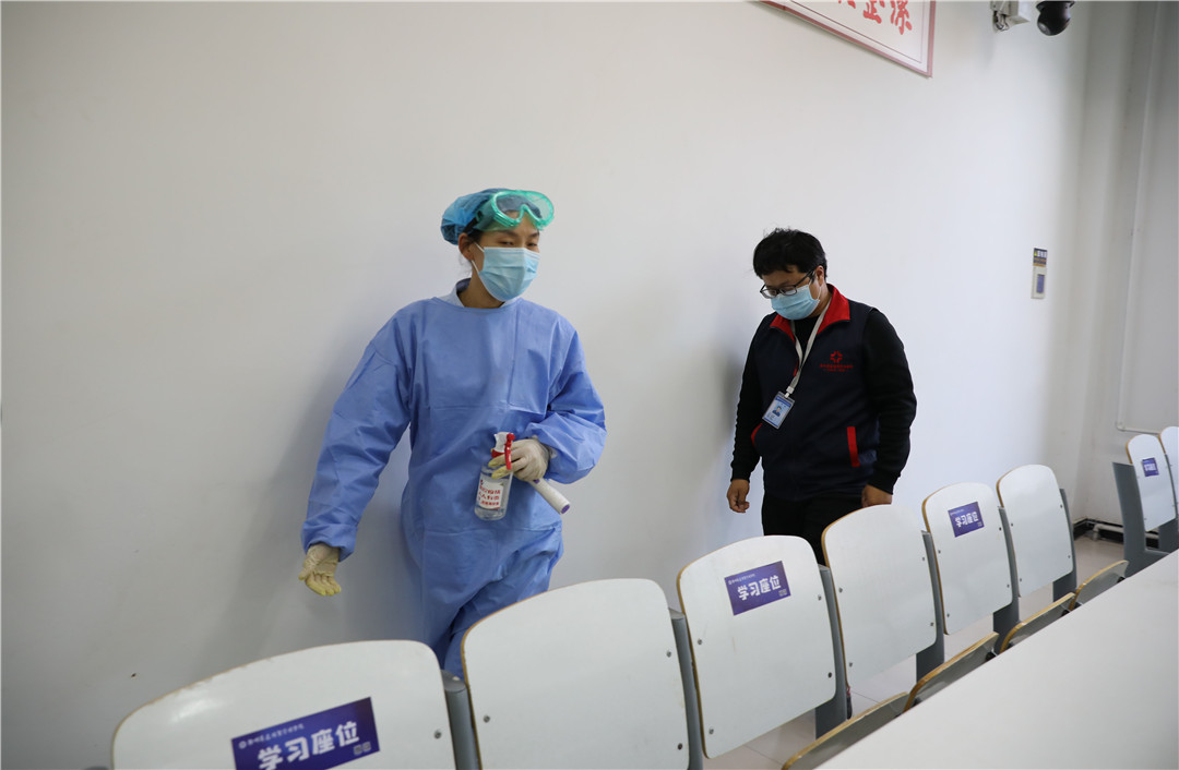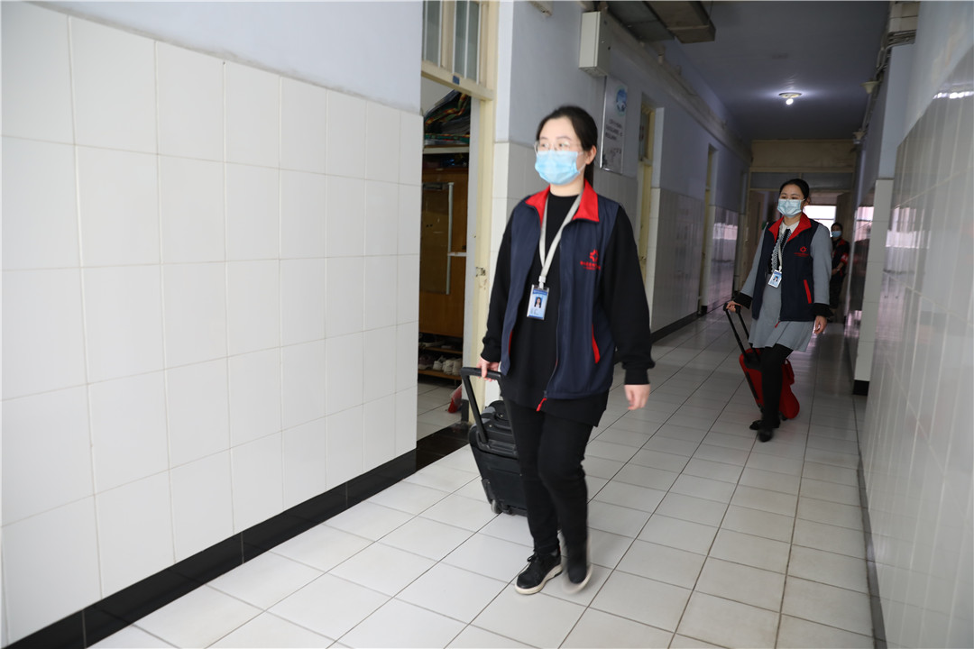 为了校园疫情防控工作需求,我校按照上级要求在第一招待所建设了集中医学隔离观察区,单人单间,有独立卫生间,生活、网络条件设施齐全,提供日常的送餐等后勤保障、网课学习保障,每日常规保洁、消杀、通风。对需要隔离医学观察的密切接触者、发热且初步排除新冠肺炎的患者,入住集中隔离区,进行隔离和医学观察。学校健康中心医务人员按照要求对隔离人员进行医学观察和健康监测。