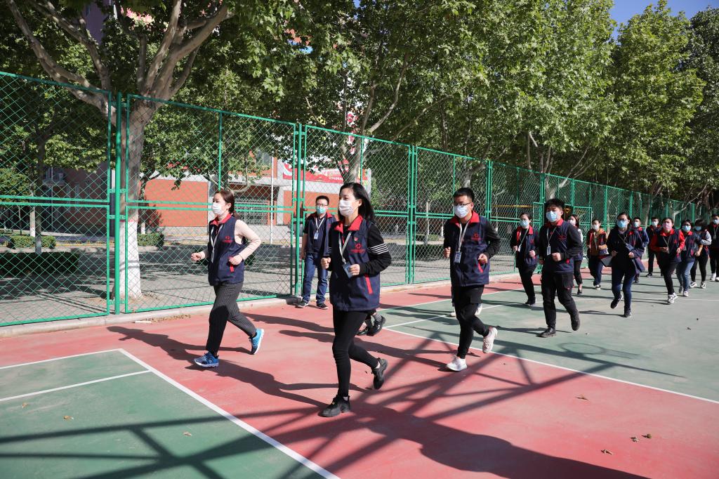 动员会之后,我校春季学生返校复学实战演练正式开始。演练由副校长兼工会主席张金安、副校长兼教务长吴益民、副校长兼总务长张其武担任总指挥,校领导执行董事王新奇、校长郭爱先、党委书记张德伟、党委副书记兼纪委书记戎庭银进行现场指导。我校疫情防控工作指挥部各工作专班成员及参演人员、相关工作人员,共计近200人参与实战演练。教职工根据分工,分别扮演老师、学生、医护人员、秩序管理与维护人员、引导员、志愿服务者等角色。