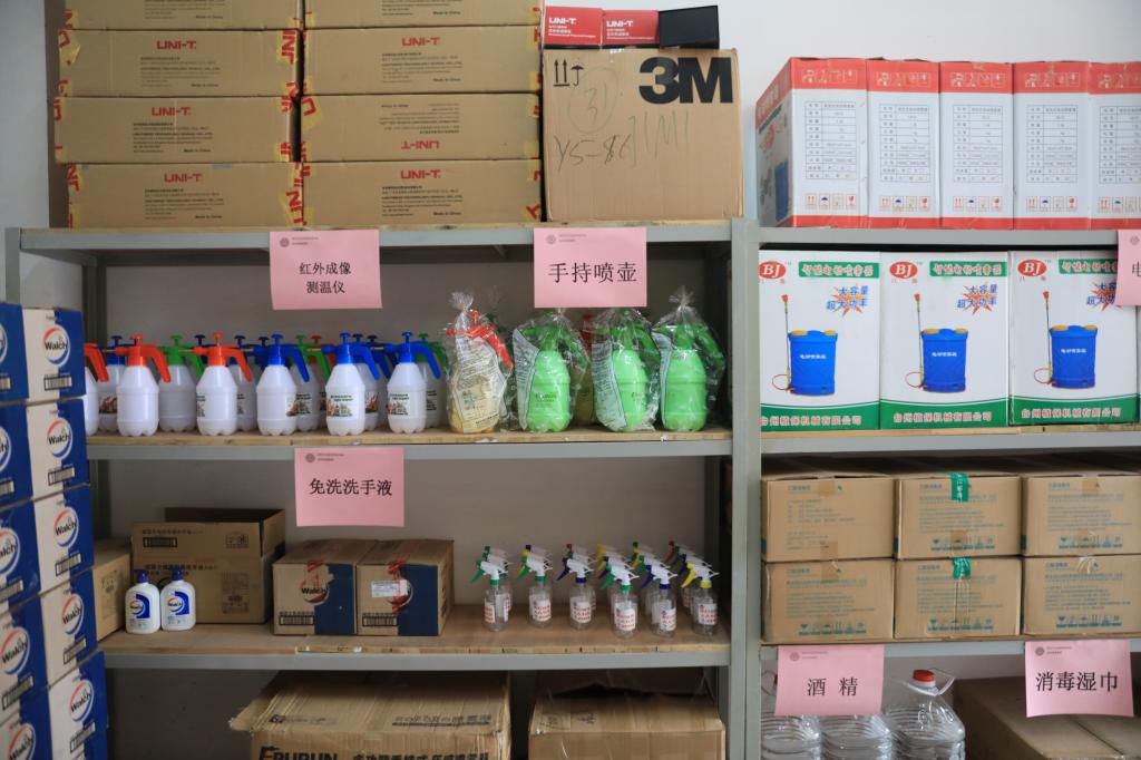 防疫物资是疫情防控工作中的必要条件,不可或缺。我校建设了三处疫情防控物资储备专用仓库;投入80多万元,购置了各种测温仪、医用口罩、医用酒精、消毒液、洗手液、紫外线消毒灯、防护服、医疗废物桶等各类防疫仪器设备和物品,为我校返校复学工作提供了充足的物资保障。