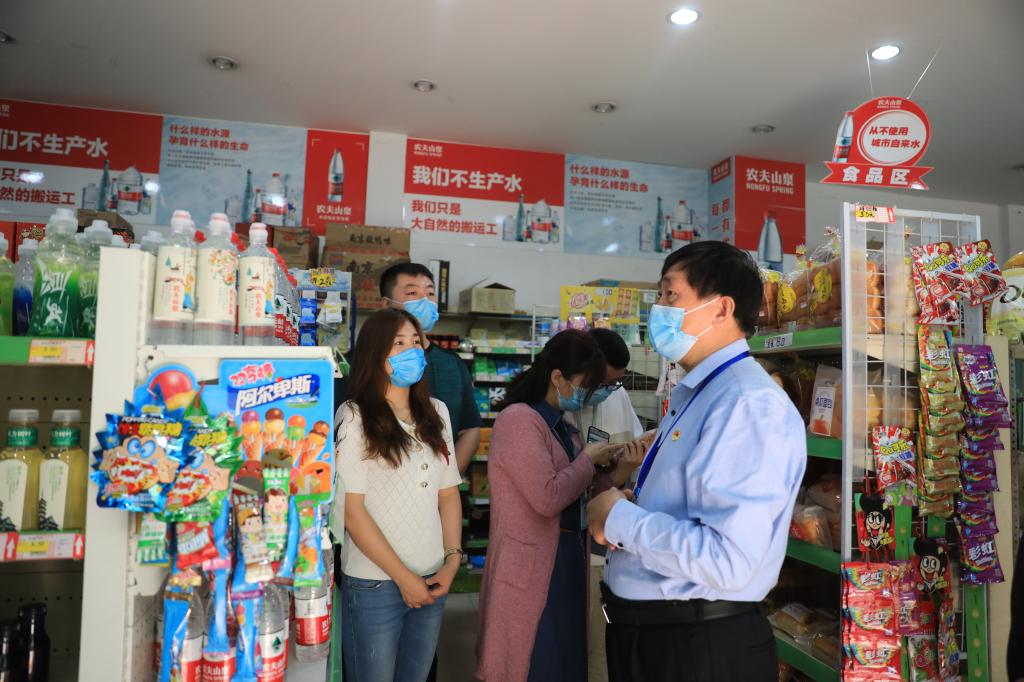 经过严格测温、消毒后,戎副书记一行最后来到校园南苑文文超市,现场查看了超市内各类食品的生产日期、保质期等,对超市负责人提出明确要求,要严格把控食品质量关,对店内各类食品的生产日期、保质期做到心中有数,定期检查,及时清除过期食品,同时要加强疫情期间室内通风、环境消杀、设施设备管理,确保师生健康安全。