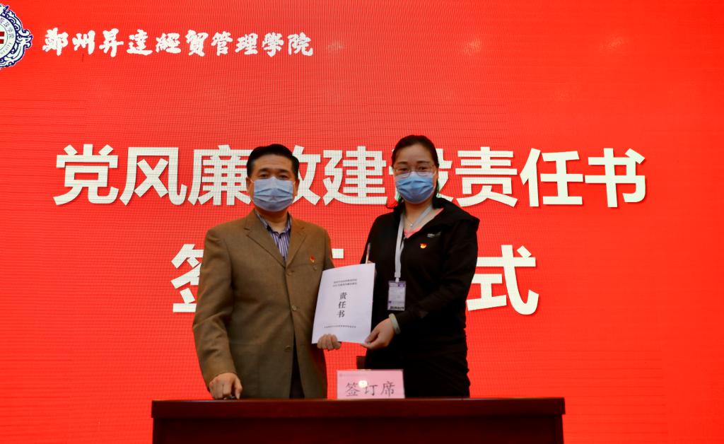 会上,张德伟书记、郭爱先校长分别代表校党委和校行政与各党总支书记、直属党支部书记和各教学院(部)院长(主任)签订了《2020年度党风廉政建设责任书》。