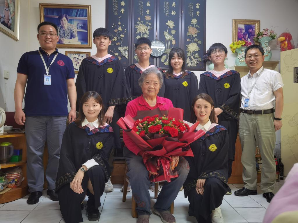 四载培育似海深,一朝离别难忘恩。为表达对学校的感谢和对创办人及董事长的感恩之情,5月24日下午,文法学院2022届应届考取研究生和法律职业资格证书的学生代表一行6人看望王淑芳董事长,文法学院院长段丰乐、党委书记刘晓川、行政秘书郑玲玲老师陪同看望。董事长在家中热情接待了来访毕业生并进行了亲切交流。
