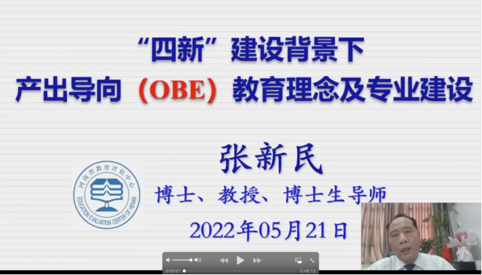为进一步深化学校本科教育教学改革,建设基于产出导向和专业认证的一流本科人才培养体系,完成基于OBE理念的2022版人才培养方案修订工作,5月21日,我校组织教务处科、质监中心、各二级学院院长、教学副院长、教学秘书、专业带头人或教研室主任等教学相关人员以线上形式参加北京华思培教育科技院举办的高等院校“四新建设”背景下基于OBE理念的人才培养方案及教学大纲制定研修班。