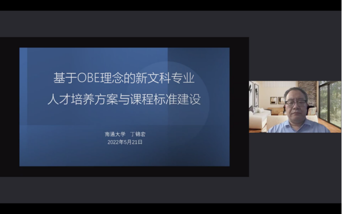 南通大学丁锦宏教授发表了题为《基于OBE理念的新文科专业人才培养方案与课程标准建设——以文科专业为例》的报告。丁锦宏首先介绍了OBE的缘起与要义与新文科新特点,随后进一步提出了基于OBE理念的新文科专业特点,并就新文科人才培养方案的难点突破与常见问题进行了解读,最后提出了基于课程开发的课程大纲建设内容。
