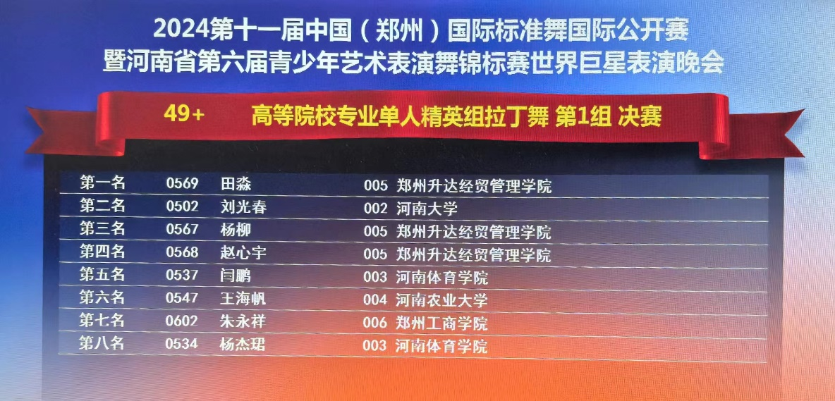通过参加本次比赛,既锻炼了队伍,又宣传了我校。为10月25-27日即将在我校举办的河南省第八届学生体育舞蹈锦标赛积累经验,也为下一个体育舞蹈盛会的成功举办而努力!