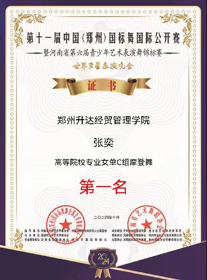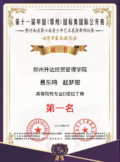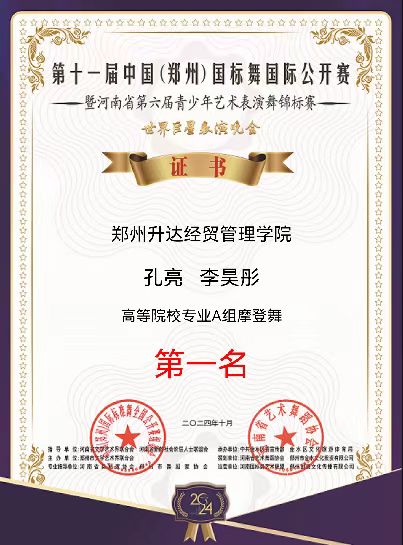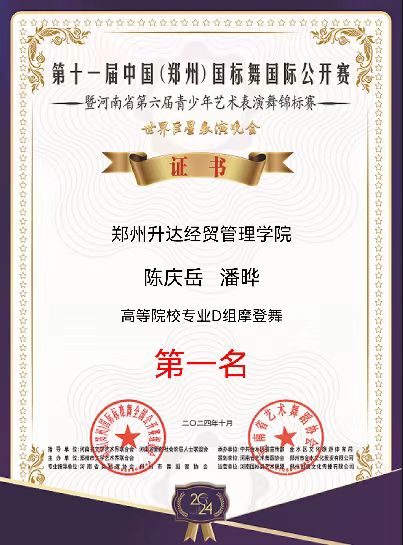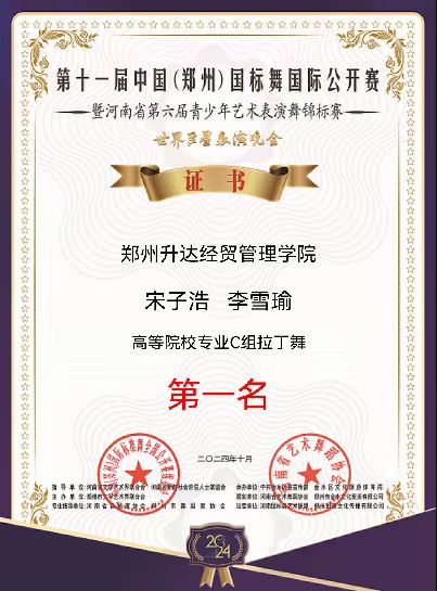 10月1-2日,第十一届中国(郑州)国标舞国际公开赛在郑州市金水区市民中心体育馆隆重举行。本次大赛由河南省文学艺术界联合会指导,金水区委宣传部策划,河南省艺术舞蹈协会承办。我校体育舞蹈代表队在本次大赛中发挥出色,取得了9项第一名的佳绩。