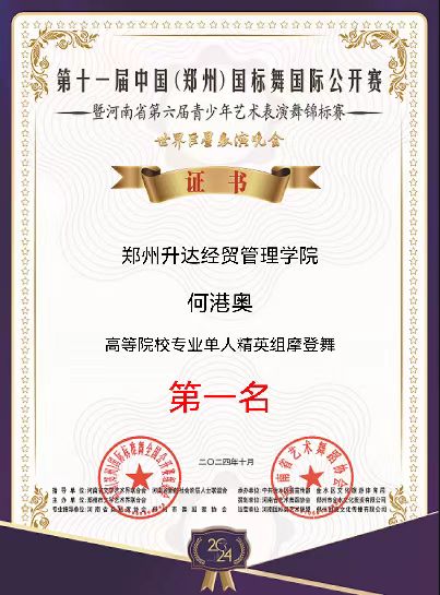 我校的何港奥、田淼等同学在高等院校专业组中发挥出色,获得9项第一名的好成绩。比赛中同学们与省内兄弟院校的同学们同场竞技,相互交流,赛出风格,赛出水平。我校体育舞蹈教师团队受大赛邀请参与本次大赛的组织工作,栗元辉教授受邀担任本次大赛高校评审监审长,于承玄老师担任比赛长,李茹老师担任执行评审长,为本次大赛的顺利进行贡献了力量。