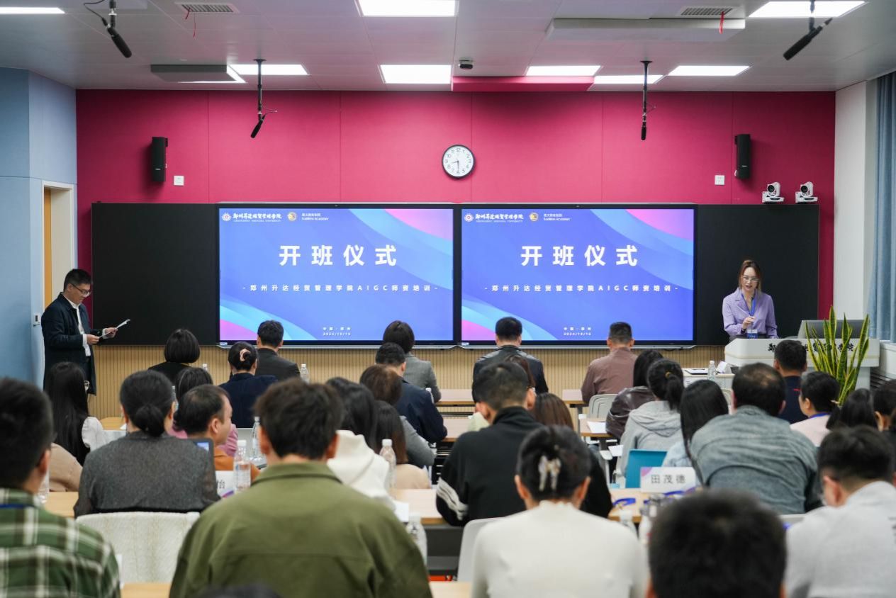 2024年10月16日上午,由凯文教育集团联合我校举办的AIGC师资培训班在道镕楼112教室举行了开班仪式。东南大学博士、教育部首批全国万名优秀创新创业导师陈滢,凯文教育集团副总经理管刚、海科数智产业学院院长张俊,我校校长张欣,创新创业教育学院院长王铮、教务长助理袁向阳等出席开班仪式。开班仪式由王铮主持。