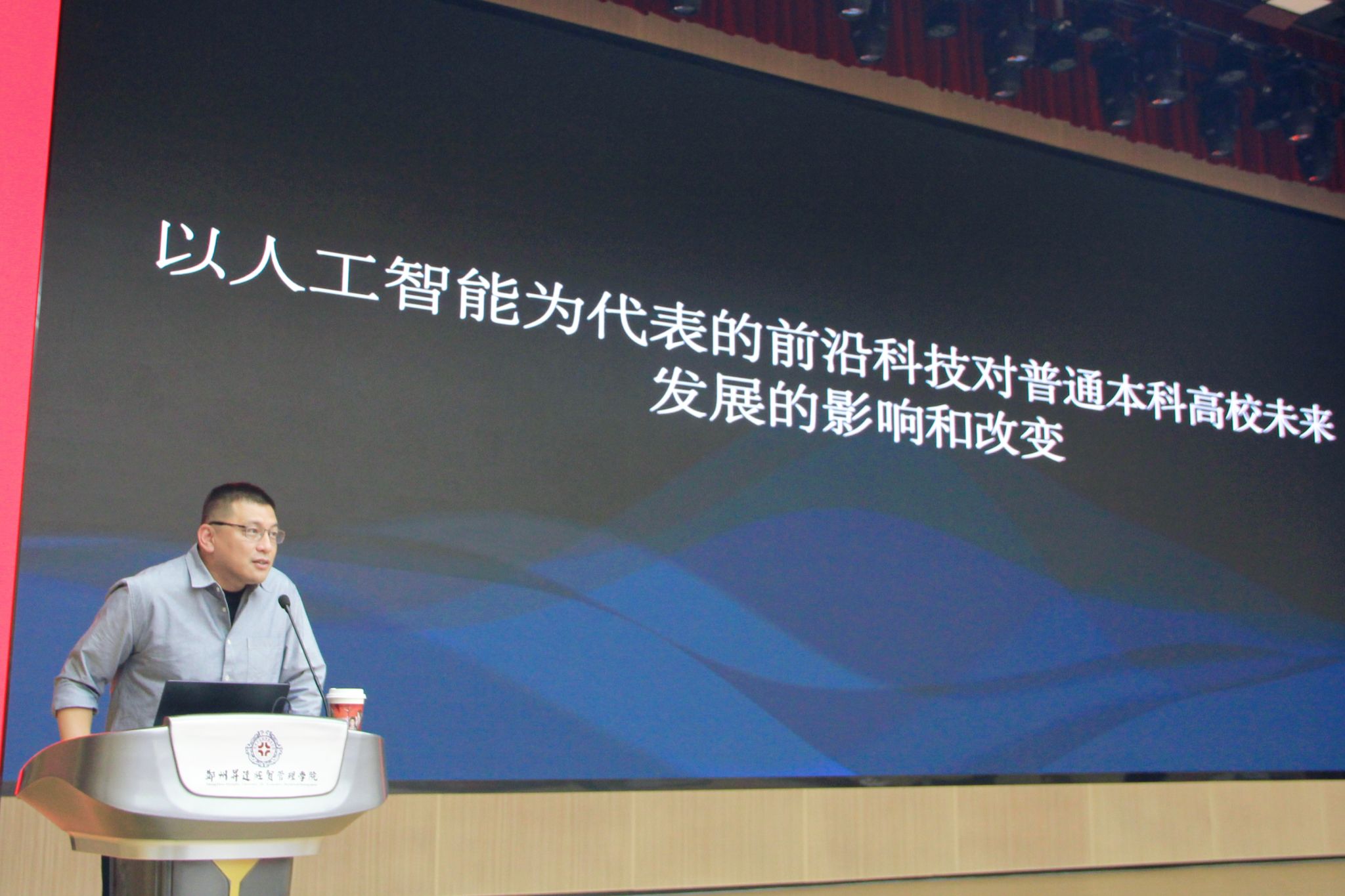 为了推动教育教学方法创新,探索前沿科技在高校教育中的应用,适应数智化时代人才培养的教育需求。工业元宇宙行业学院特邀请香港中文大学宁晓然博士,于2024年10月18日下午在新图书馆3号报告厅作《以人工智能为代表的前沿科技对普通本科高校未来发展的影响和改变》报告分享。校领导、部分职能部门主管、各二级学院院长、教职工和学生代表听取了报告,报告由工业元宇宙行业学院执行院长吴晓主持。