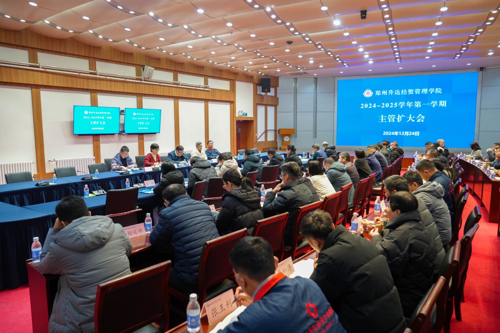 12月24日下午,我校在国际会议厅召开2024-2025学年第一学期第二次教学行政主管(扩大)会议。董事长王新奇、校党委书记雷霆、校长张欣、副校长张金安、副校长张其武及全体中层干部出席会议。会议由校长张欣主持。