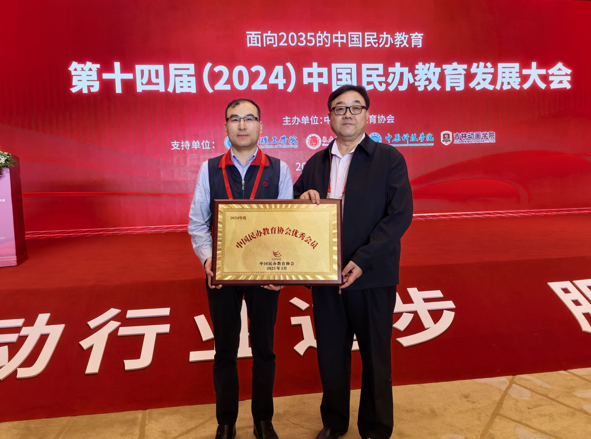 大会对表现突出的民办高校进行了表彰,我校在全国民办高校中脱颖而出,荣获“中国民办教育协会(2024年度)优秀会员”。