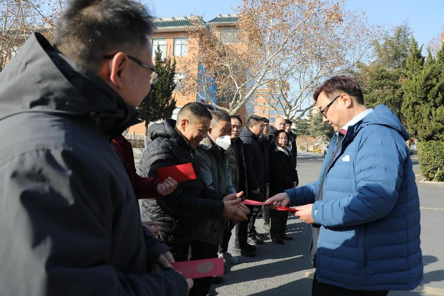 祥龙辞岁去,金蛇迎春来。1月29日(大年初一)上午,董事长王新奇,党委副书记、副校长张金安一行受荣誉董事长王淑芳委托走访慰问了春节期间坚守岗位、奋战在一线的教职员工,并向他们及其家人致以诚挚的感谢和新春的祝福。
