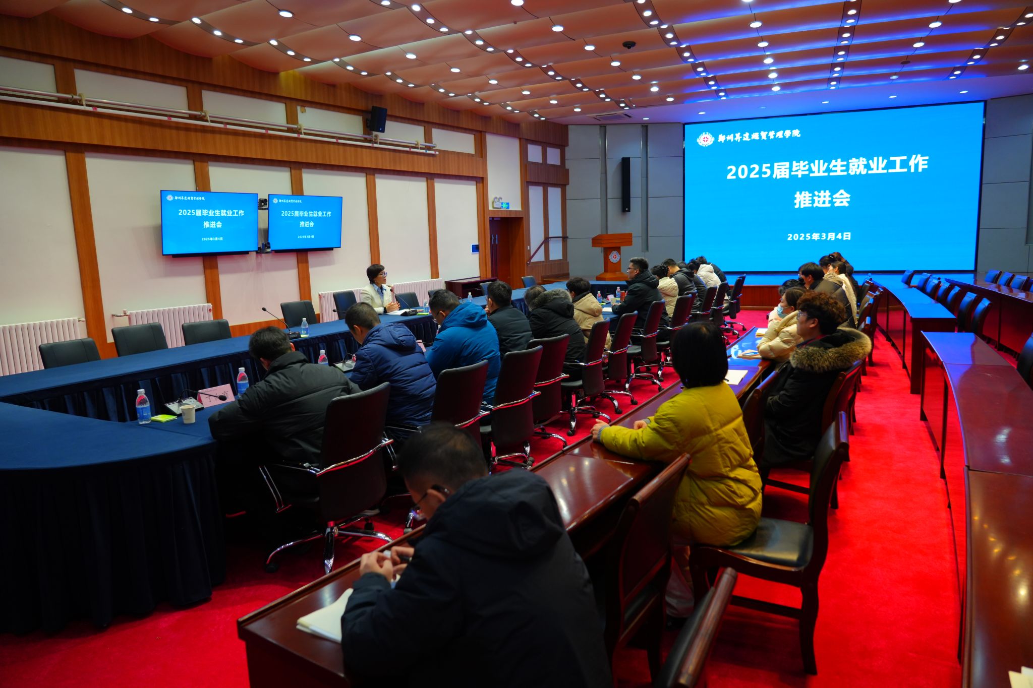 为深入贯彻落实国家和河南省关于高校毕业生就业工作的决策部署,全力推动2025届毕业生高质量充分就业,3月4日,我校在国际会议厅召开会议,专题研究并制定了2025届毕业生就业工作实施方案。校长张欣及相关处室主管、各二级学院党委书记参加了此次会议。